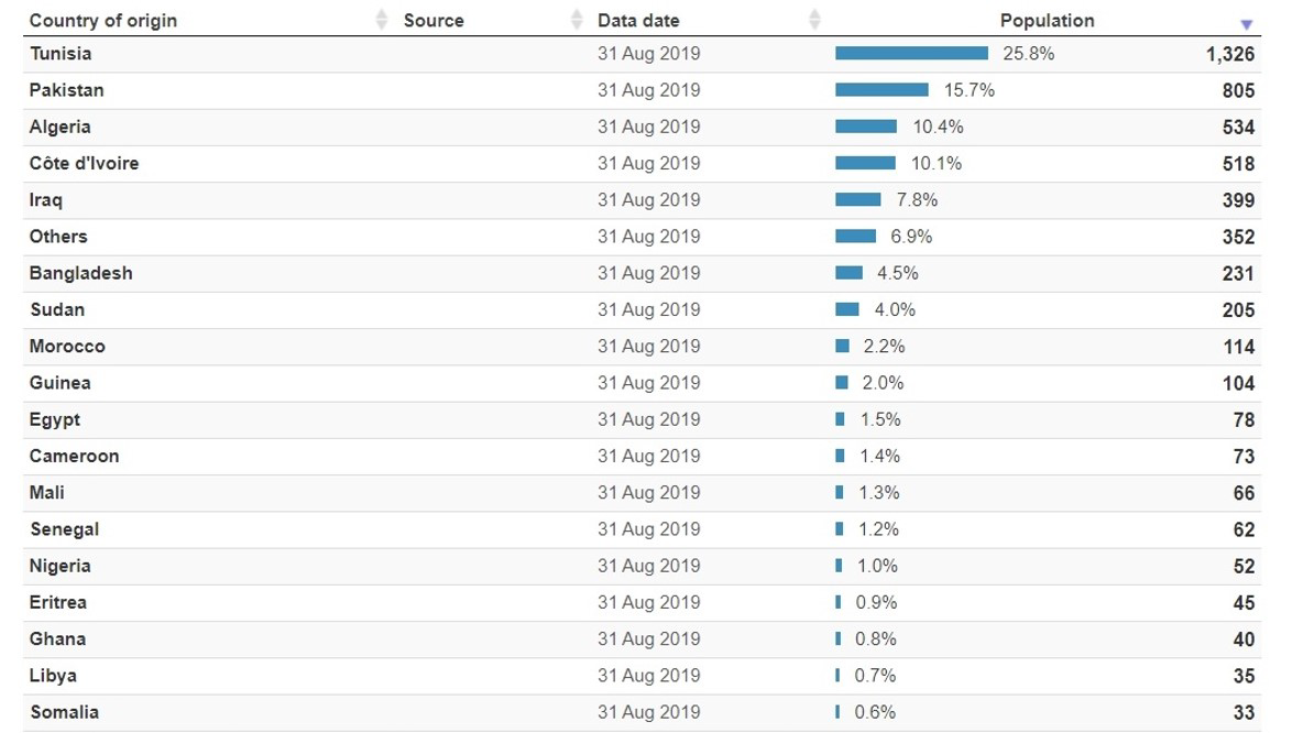 Da quali paesi provengono i migranti giunti in Italia nel 2019? Soprattutto dall’Afghanistan, dalla Siria, dalla Guinea e dal Marocco. E in Italia, in particolare, giungono anche daTunisia, Algeria, Sudan e Guinea.