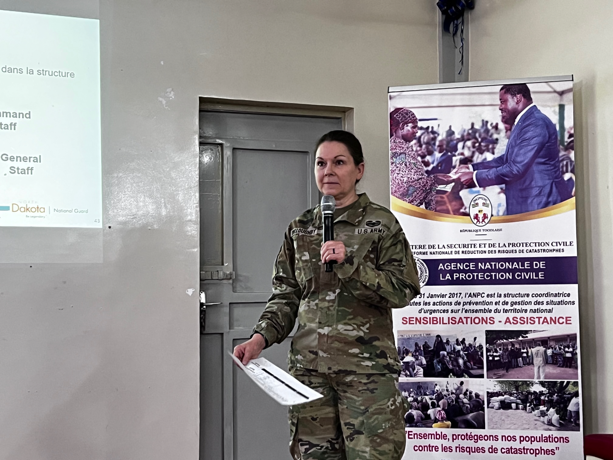 The exercise injects included preparing for and responding to flooding, pandemics, and inter-community conflict due to effects of climate change. N.D. National Guard participants included Lt. Col. Ann Willoughby, Joint Force Headquarters Domestic Response Operations; Maj. Louis Harness, 119th Medical Group, Sgt. 1st Class Thomas Webster, 426th Signal Company; Sgt. Sam Zezeus, N.D. Army National Guard Medical Detachment; along with the director, N.D. National Guard State Partnership Program, Lt. Col. Mark McEvers. The training also included Capt. Jeremiah Colbert, 119th Wing, who is on a two-year tour with U.S. Africa Command, assigned as the bilateral affairs officer, he works for the U.S. Ambassador to Togo.