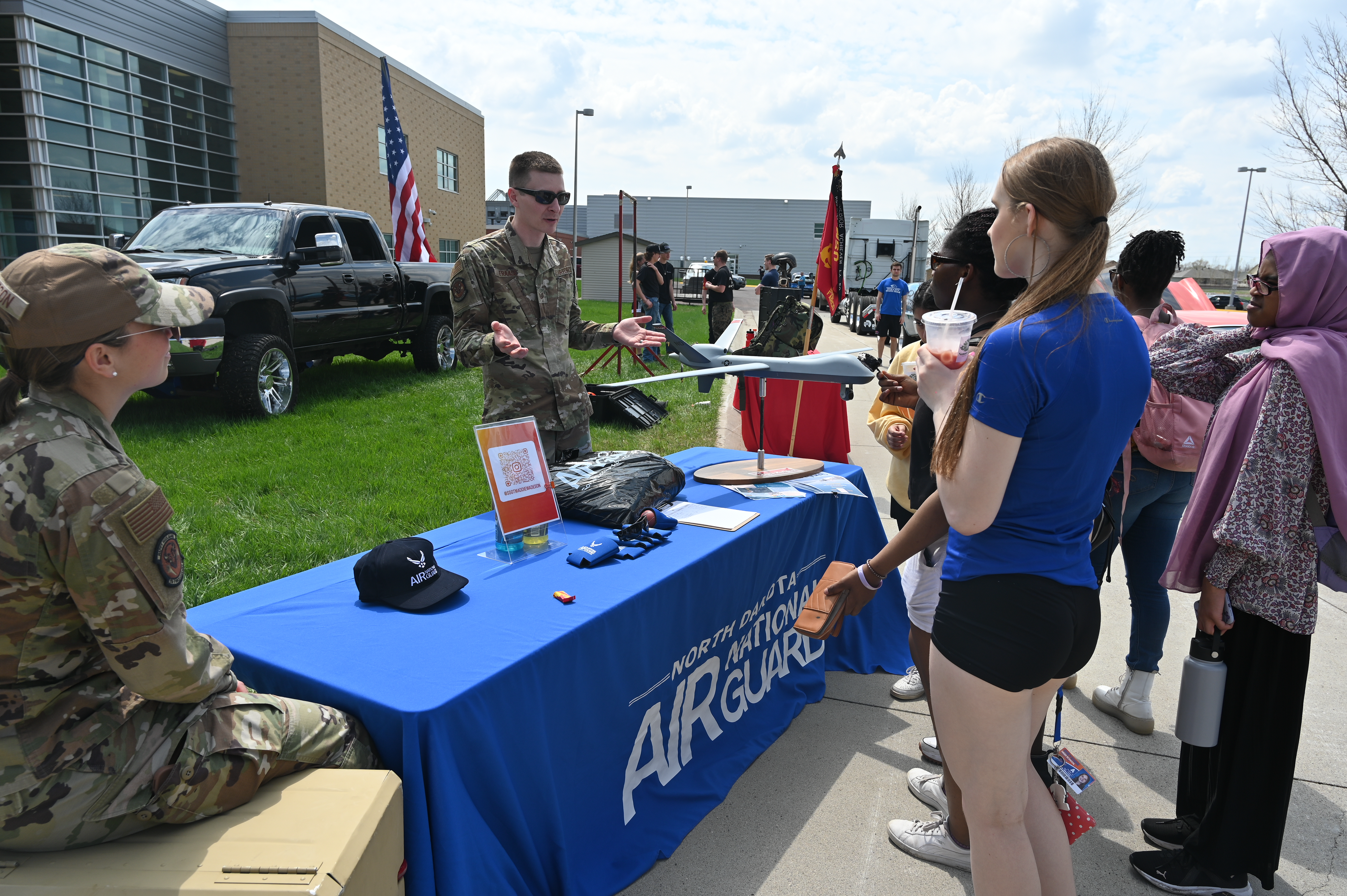 This aviation education program saw over 200 students attend the event where recruiters briefed them on the UAV aircraft and capabilities operated by the N.D. National Guard. This included the MQ-9 Reapers flown by the N.D. Air National Guard, and the RQ-11 Raven operated by the N.D. Army National Guard.
