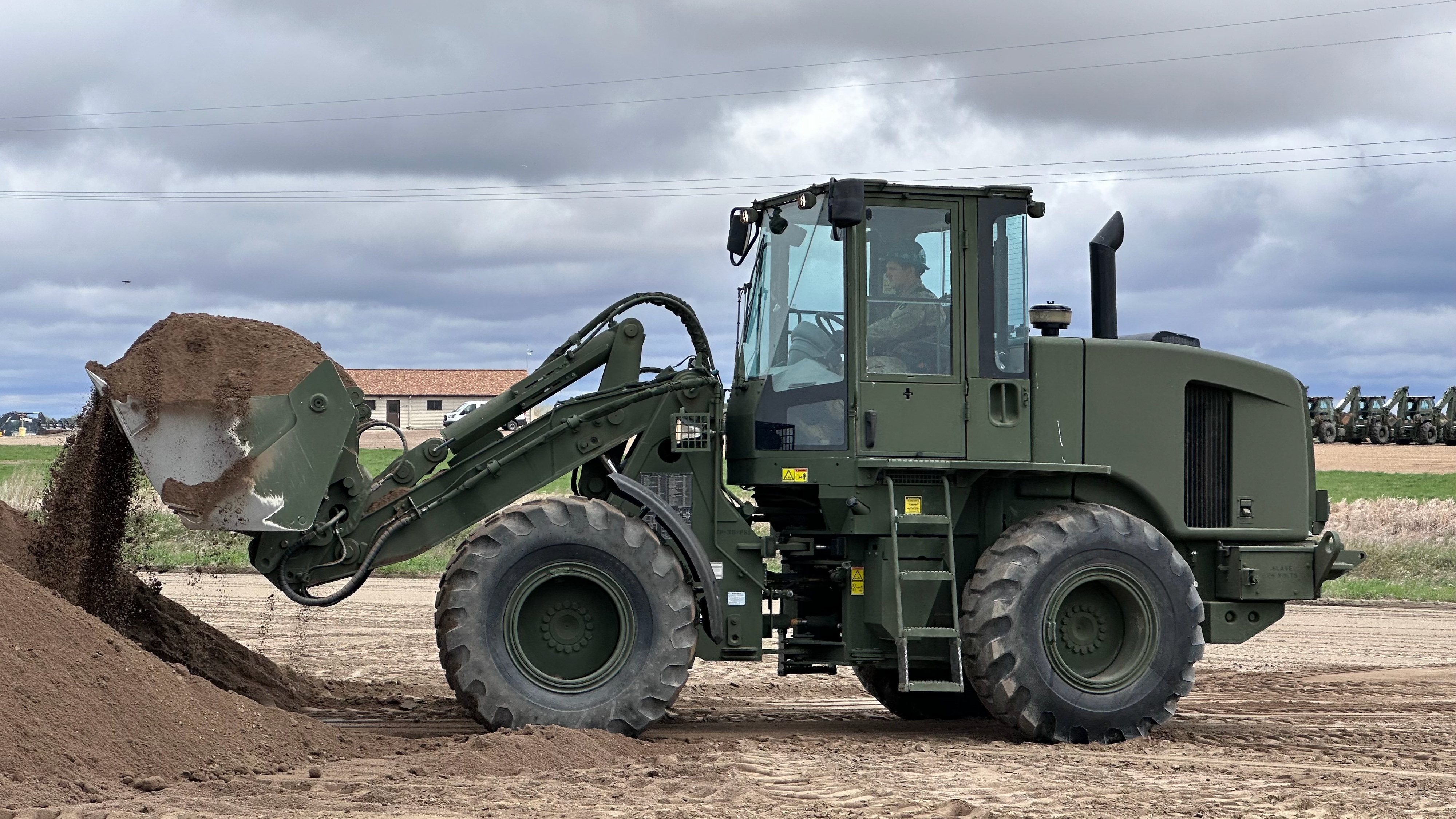 Horizontal Construction Engineer (MOS 12N) students trained with bucket loaders and dump trucks at the Horizontal Training Area, 164th Regional Training Institute (RTI), Camp Grafton Training Center, Devils Lake, N.D., May 18, 2023 (Photo by Sgt. 1st Class Chad Bakken, 164th Regional Training Institute Regiment)