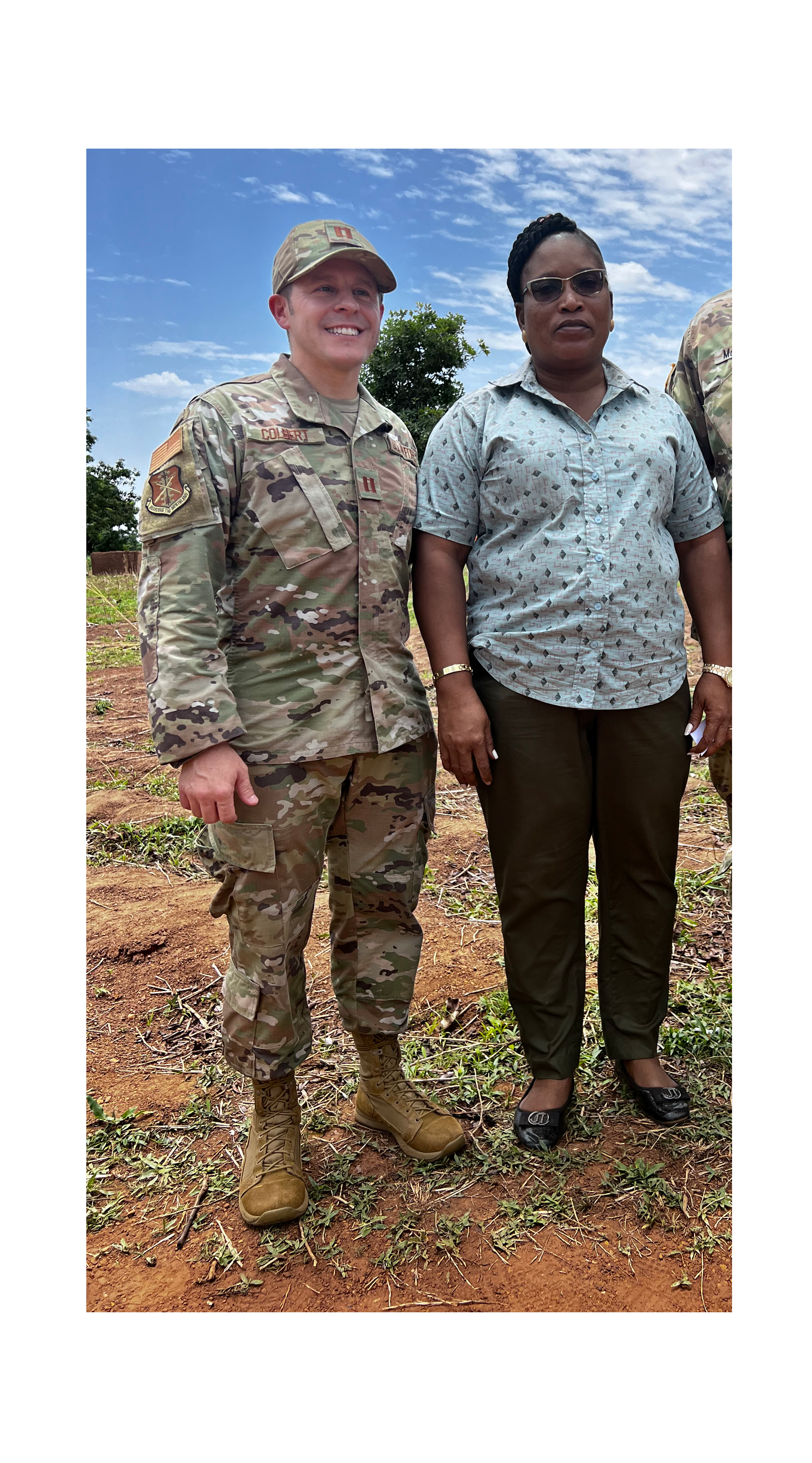 Capt. Jeremiah Colbert is the first Bilateral Affairs Officer (BAO) who works on Department of Defense projects and initiatives on behalf of U.S. Africa Command and the U.S. Ambassador to Togo, Elizabeth Fitzsimmons. Maj. Louisa Harness, 119th Medical Group, is supporting the exercise with her medical knowledge from overseas deployments, to include multiple trips to Ghana.