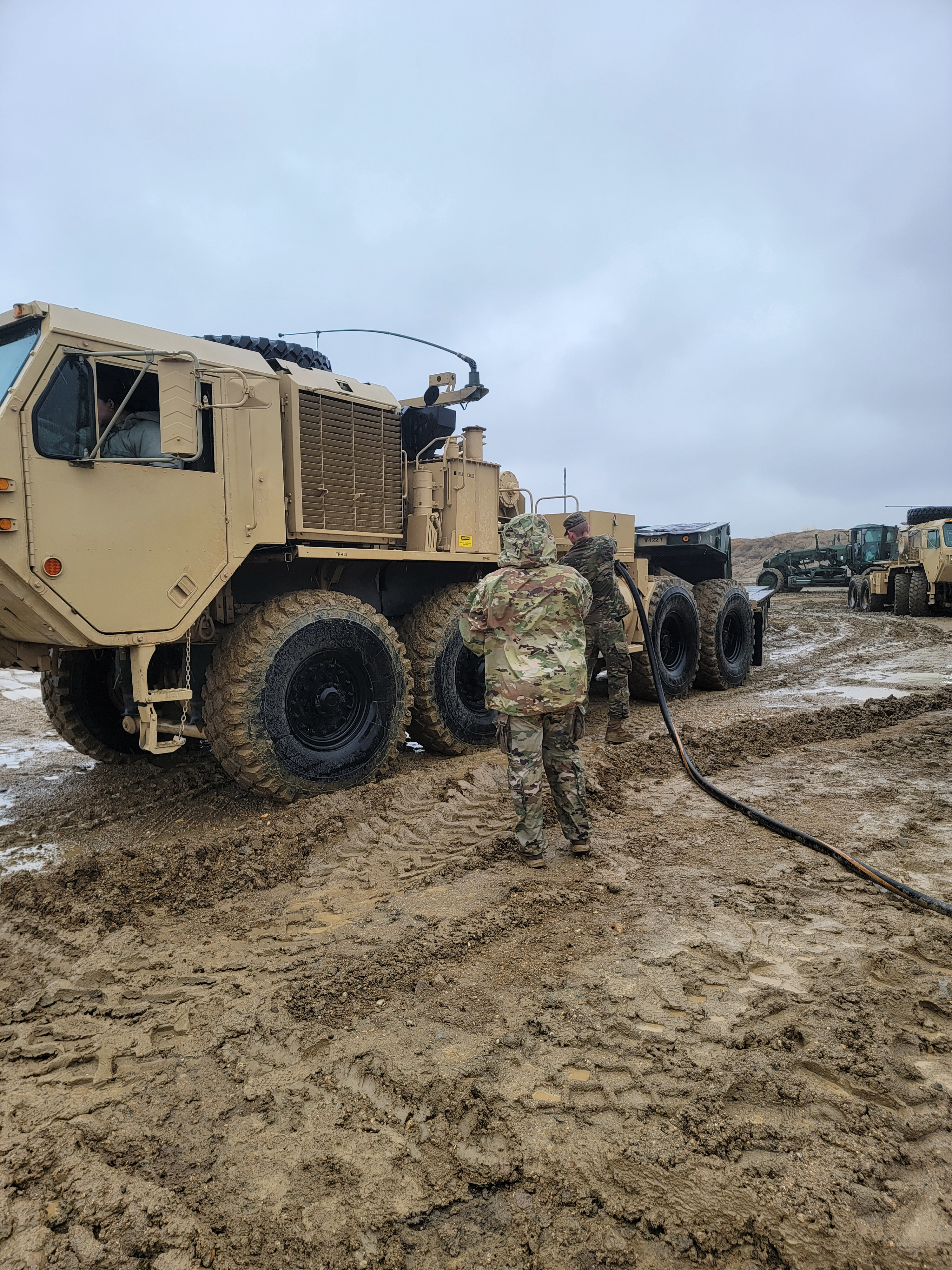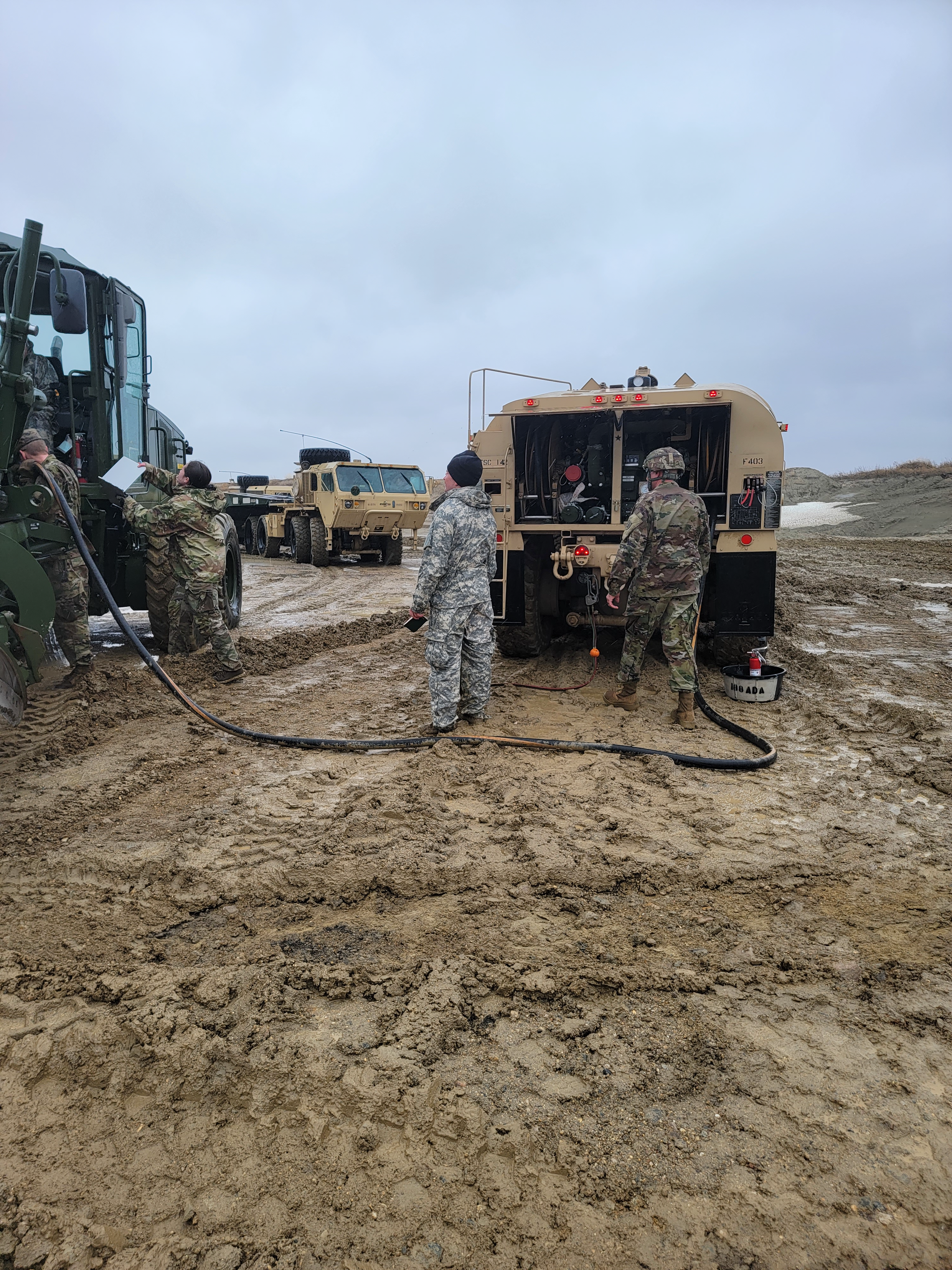 Soldiers from the Forward Support Company, 142nd Engineer Battalion, conducted refueling operations during their Inactive Duty for Training weekend in Wishek, N.D., May 6, 2023. (National Guard Story and photos by 2nd Lt. Dustin Kelly, 142nd Engineer Company)