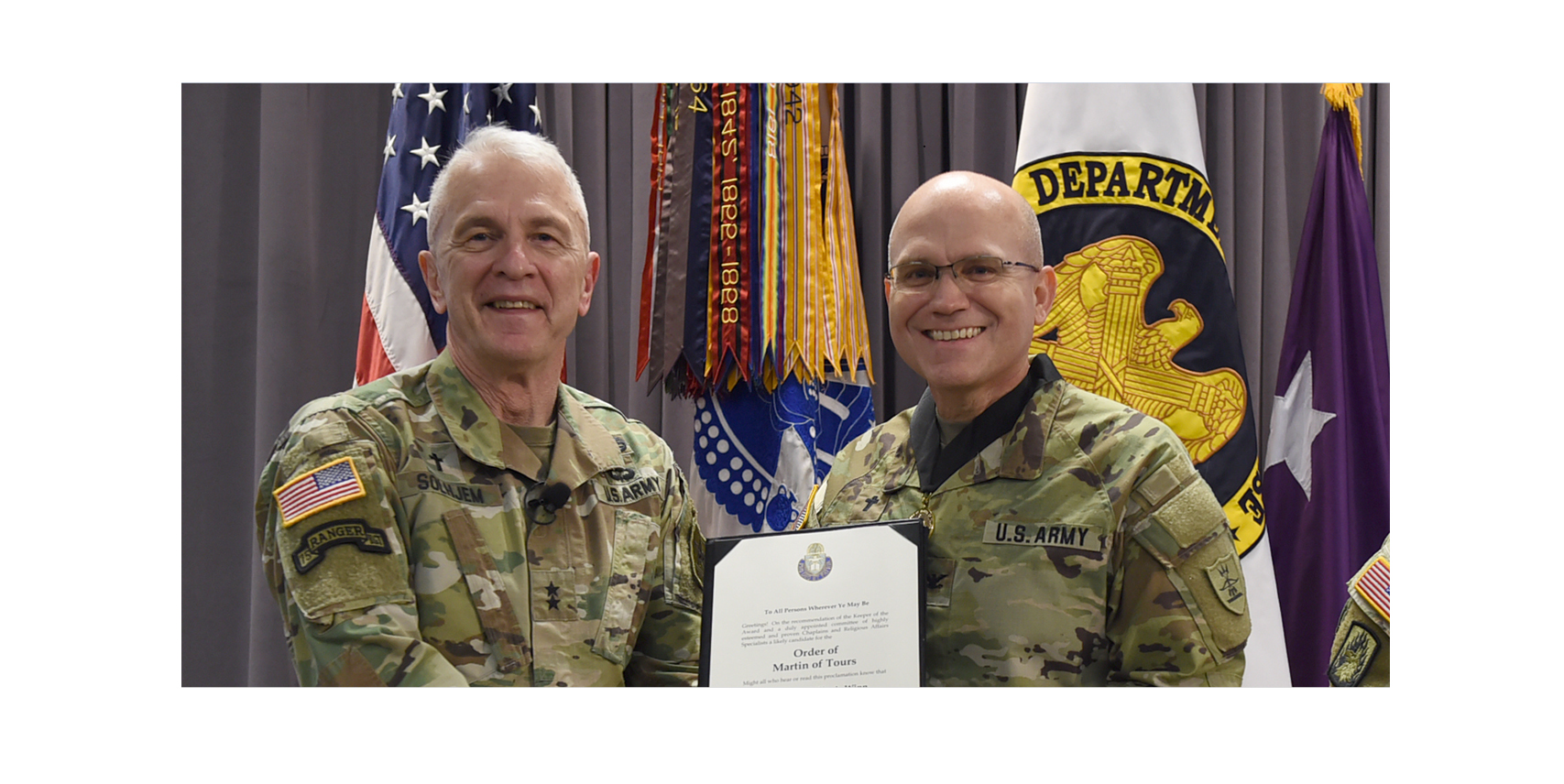 This is one of several U.S. Army Chaplain Corps regimental awards. According to a memorandum from that office, there are two levels of “Order of Martin of Tours" awards, named in honor of a pious soldier in the Roman army.