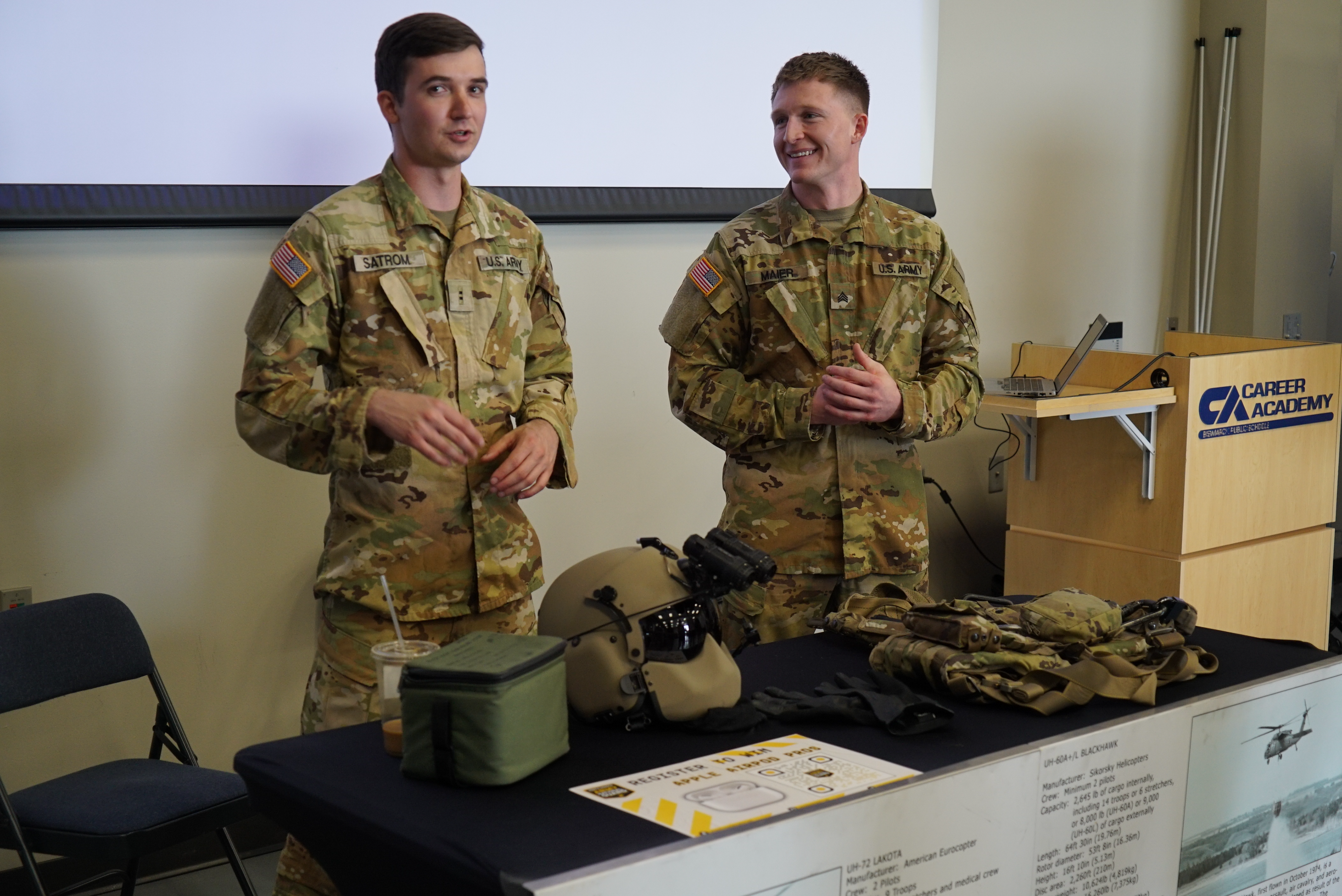 The event allowed high school students the opportunity to explore careers fields the N.D. Army National Guard offers. Soldiers who hold various MOSs (Military Occupation Specialty) were present to discuss their experiences.