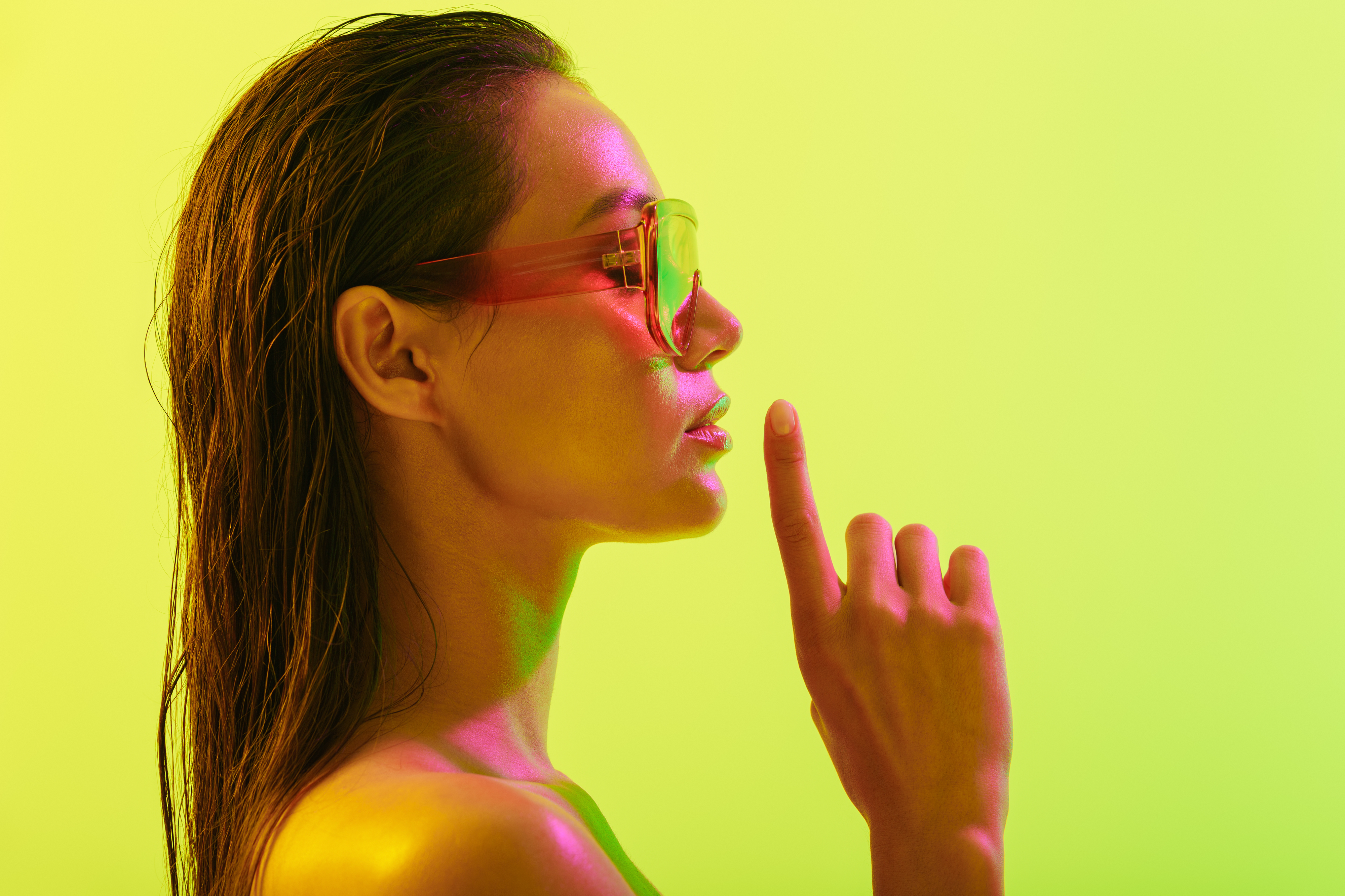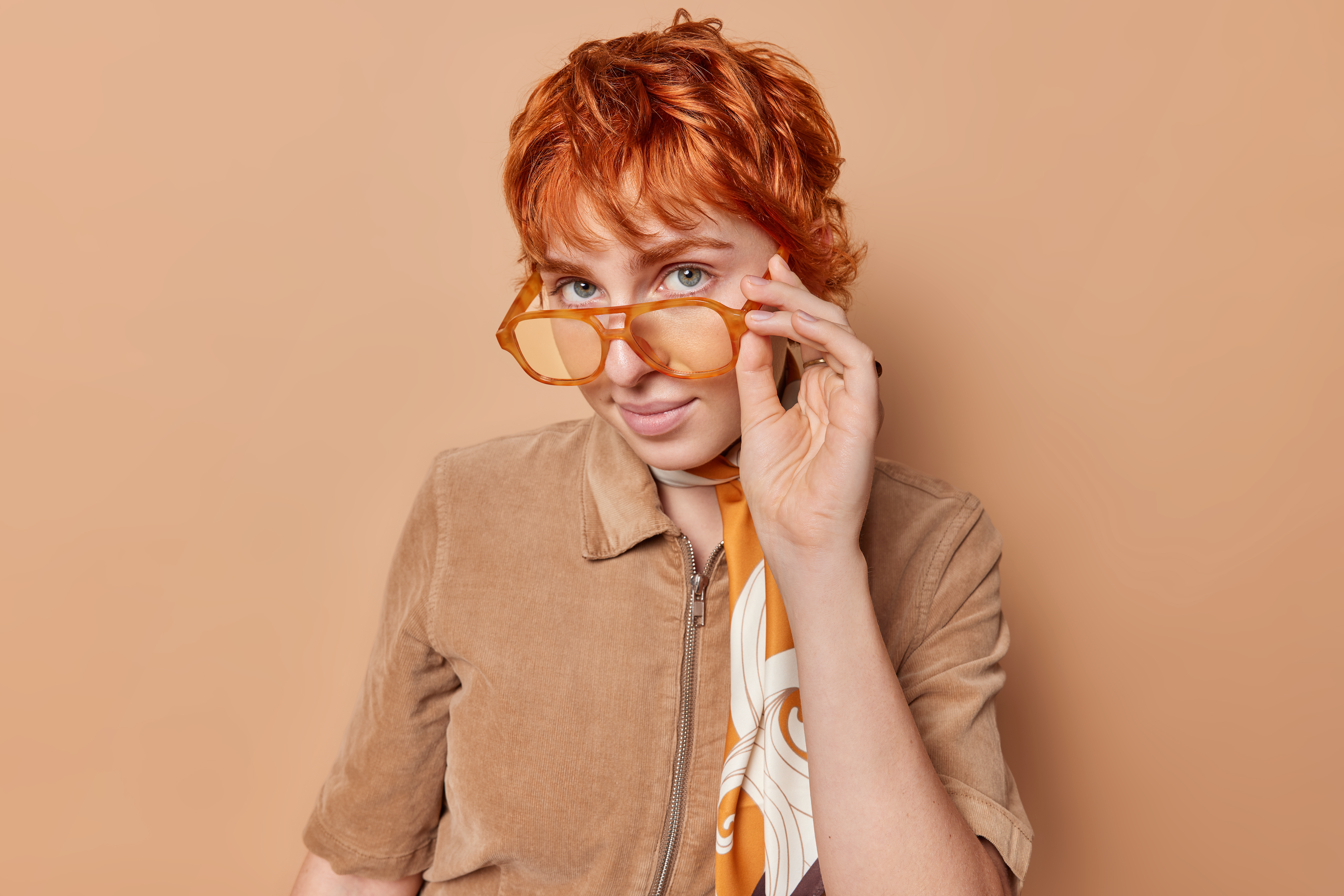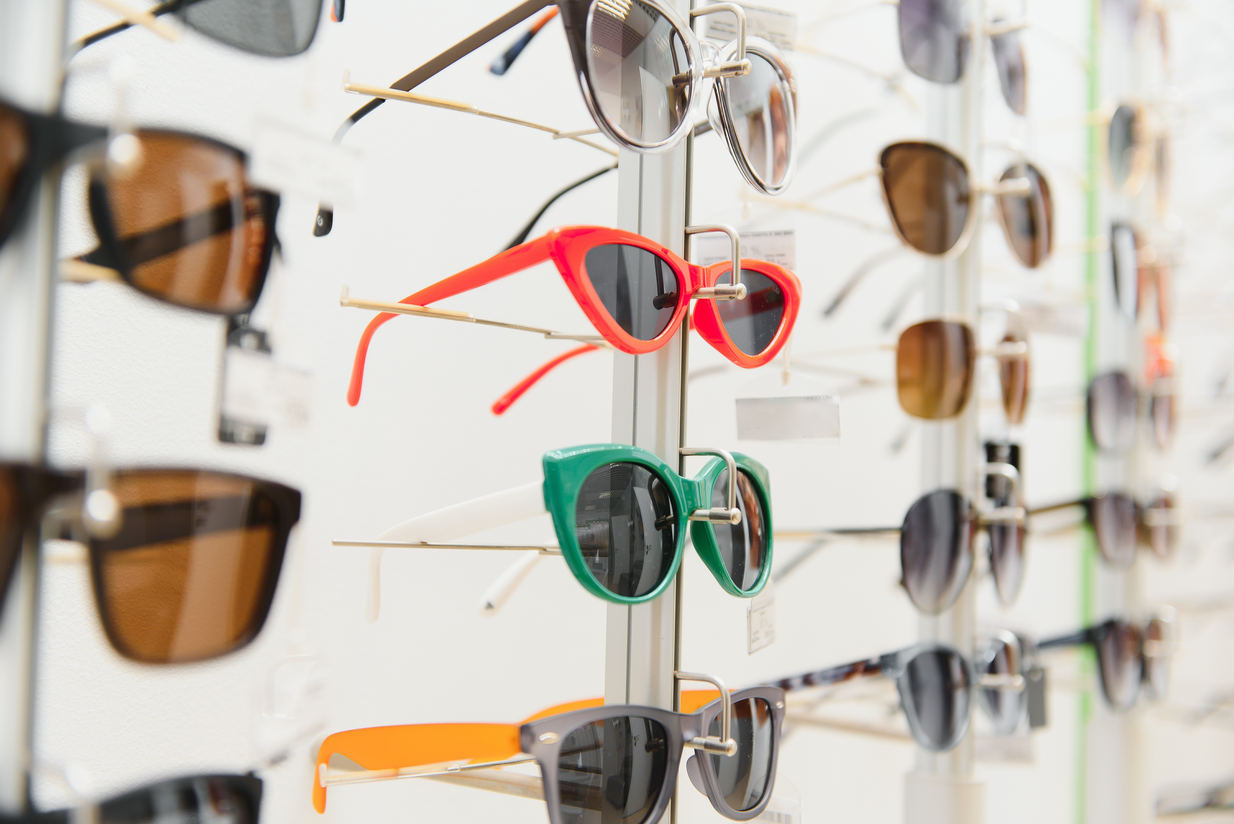 Created with images by onlyyouqj - " Food Plaza entrance glass door" • Drobot Dean - "Amazing young woman posing isolated over yellow wall background with neon bright lights wearing fashion sunglasses." • wayhome.studio - "Portrait of beautiful woman with short red hair wears big spectacles wears dress and kerchief around neck isolated over brown background. Self confident female teacher listens something attentively" • rh2010 - "Senior woman patient talking with female ophthalmologist during a medical consultation at the ophthalmologic office. Doctor writing medical history or recipe" • Focused Adventures - "Colorful dive shop sign" • Serhii - "rack with glasses and sunglasses close up" • sichon - "Customer show smile face emoticon for rating. Service rating, feedback, satisfaction concept"