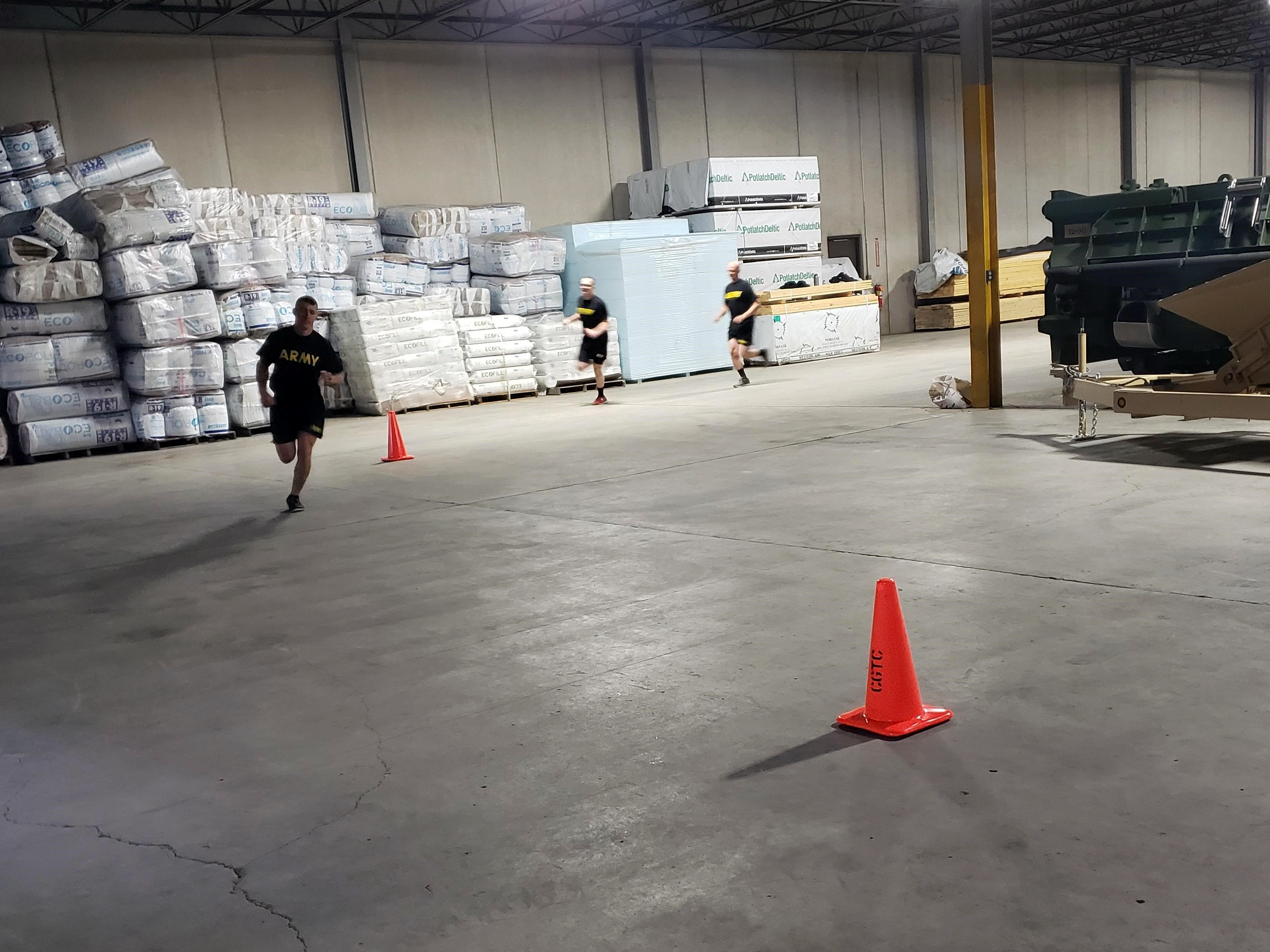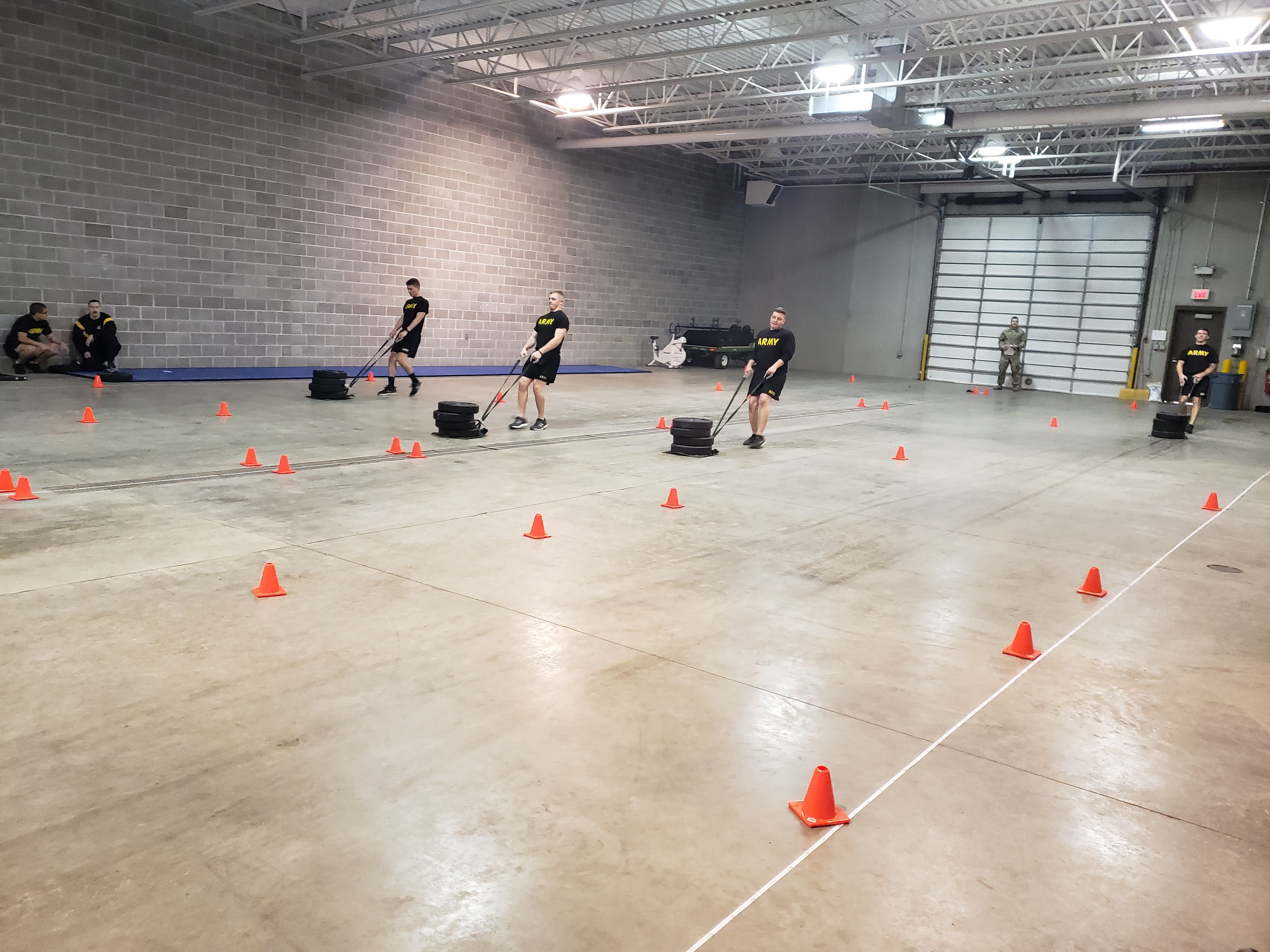Soldiers of the 817th Engineer Company participate in the Army Combat Fitness Test's Sprint-Drag-Carry event during the unit's Inactive Duty Training period on Jan. 9, 2021.
