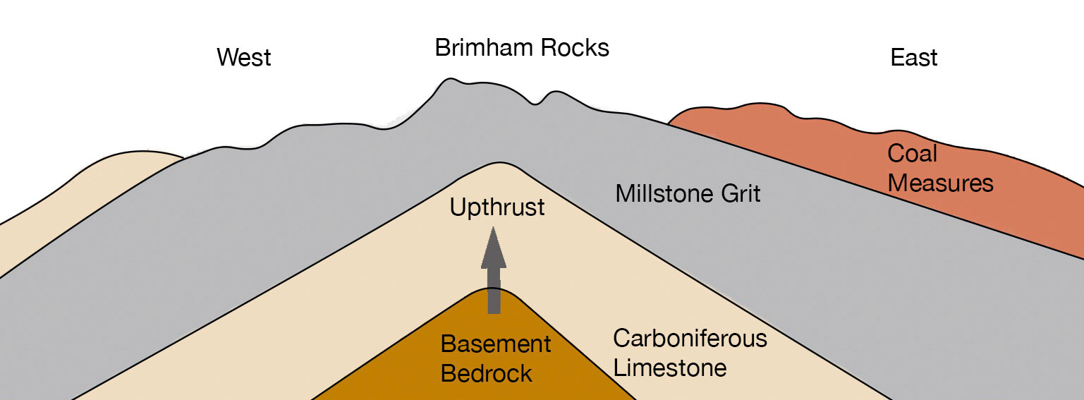 After just 250,000 years another earthquake shook the land and the ground levels again shifted, though this time the effect was to move the dynamic river away from the area. During the next 20 million years or so Millstone Grit continued to be deposited covering Brimham and most of northern England in massive layers of rock. Further tectonic shifts created an upthrust that raised the Pennines and, in particular, the rocks overlying Brimham to the point where the effects of millions of years of erosion wore away these layers.