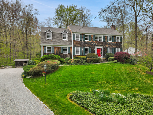 Welcome to your serene oasis in Wilton, Connecticut. Nestled down a secluded driveway, this timeless center hall Colonial beckons with its tranquil setting and versatile layout.