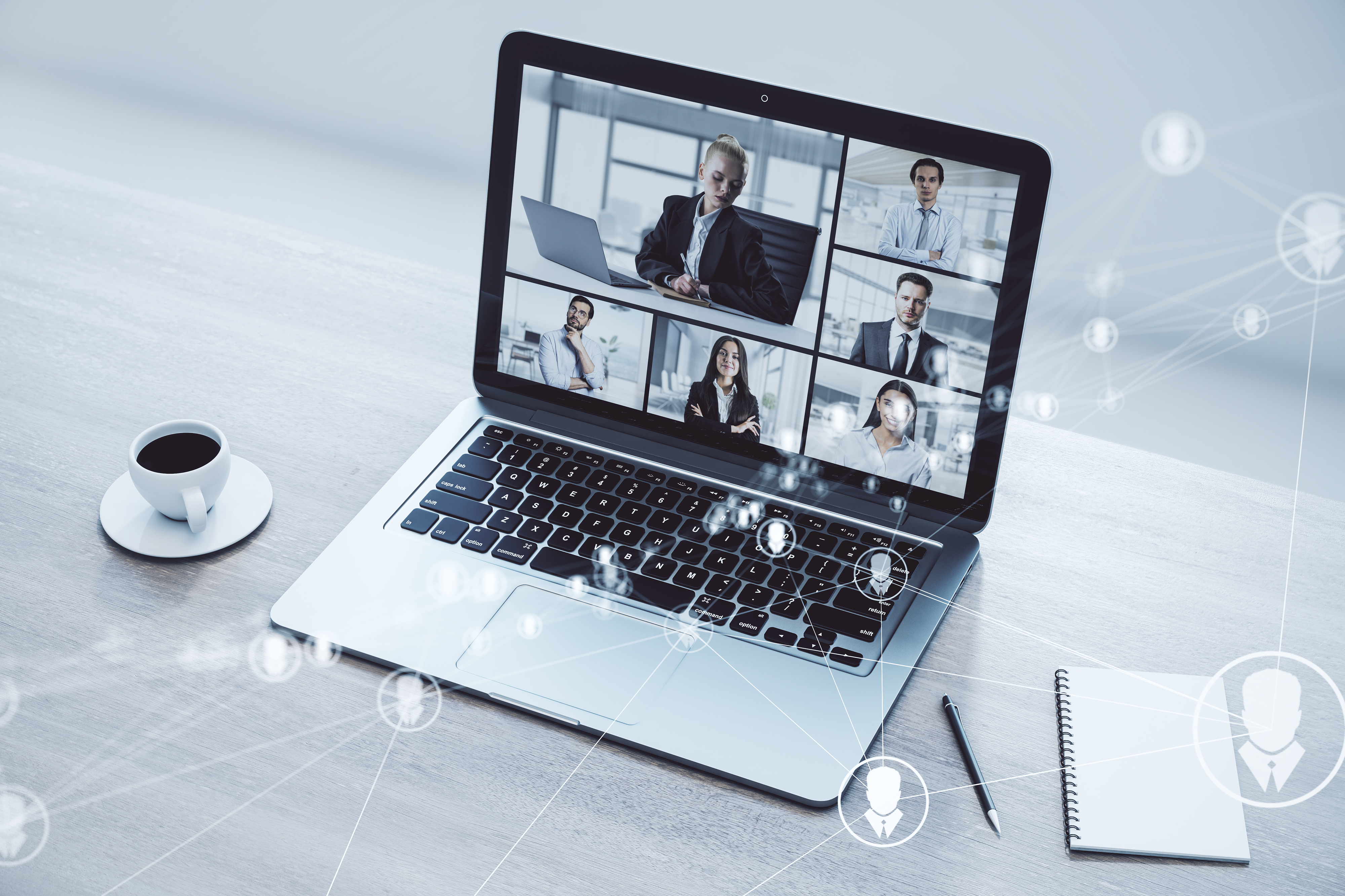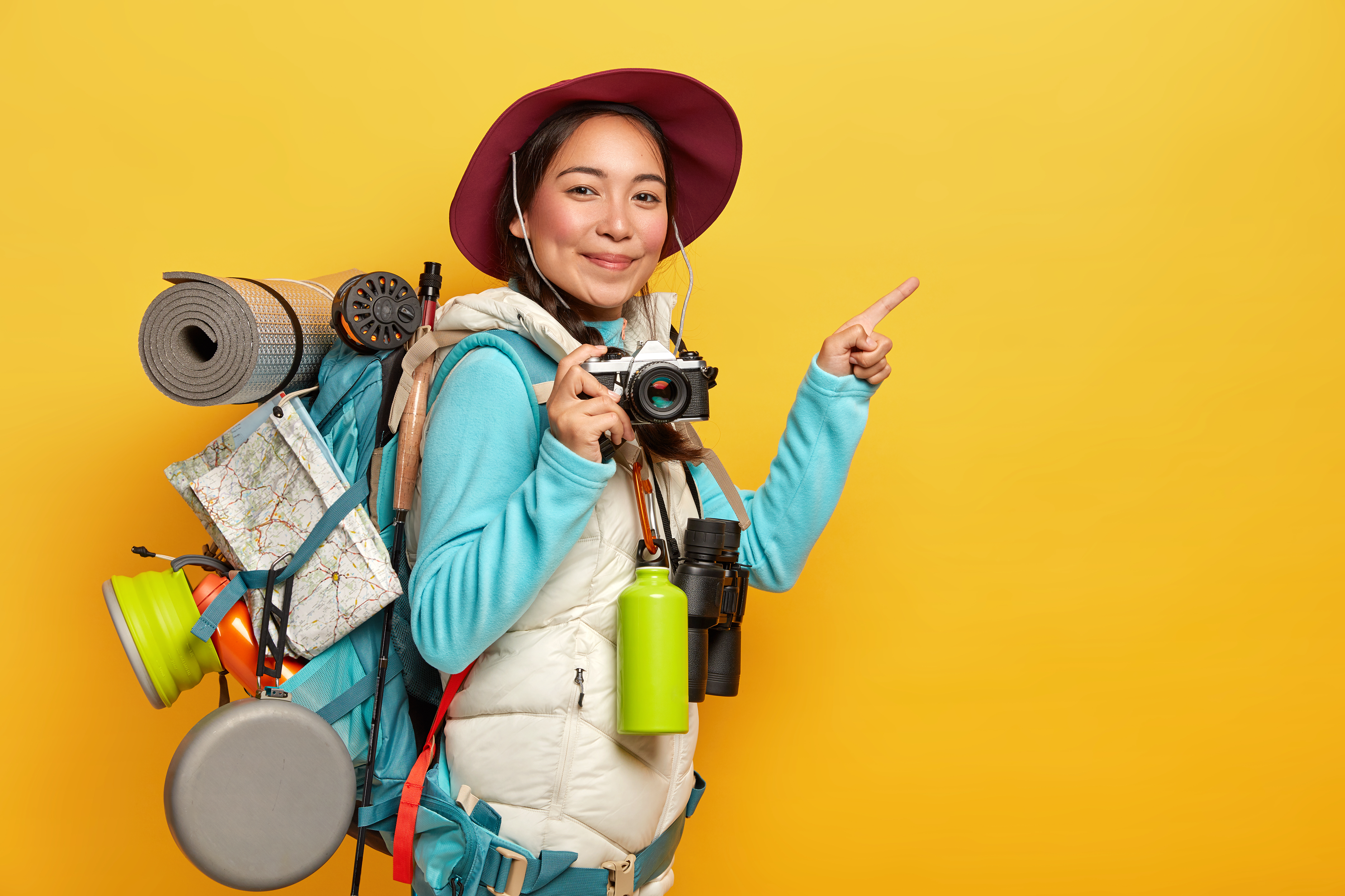 Created with images by • Tierney - Travel theme with a miniature airplane and a map - flat lay • Who is Danny - Online conference call with multiple participants on computer screen. Remote business communication • CozyDigital - Business creation. Selection of the right people. Business hierarchy. Wooden cubes with icons of people on yellow background • Pixel-Shot - Packed suitcase and photo camera on color background. Travel concept • magele-picture - Apply your Knowledge • wayhome.studio - Active female backpacker points index finger on copy space aside, holds retro camera, takes pictures, carries rucksack, binoculars and thermos, wears casual clothes, isolated over yellow background