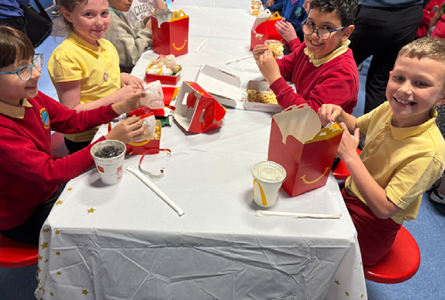 Some of the children in class showed great values this half term and in doing so, enjoyed a treat dinner - well done!
