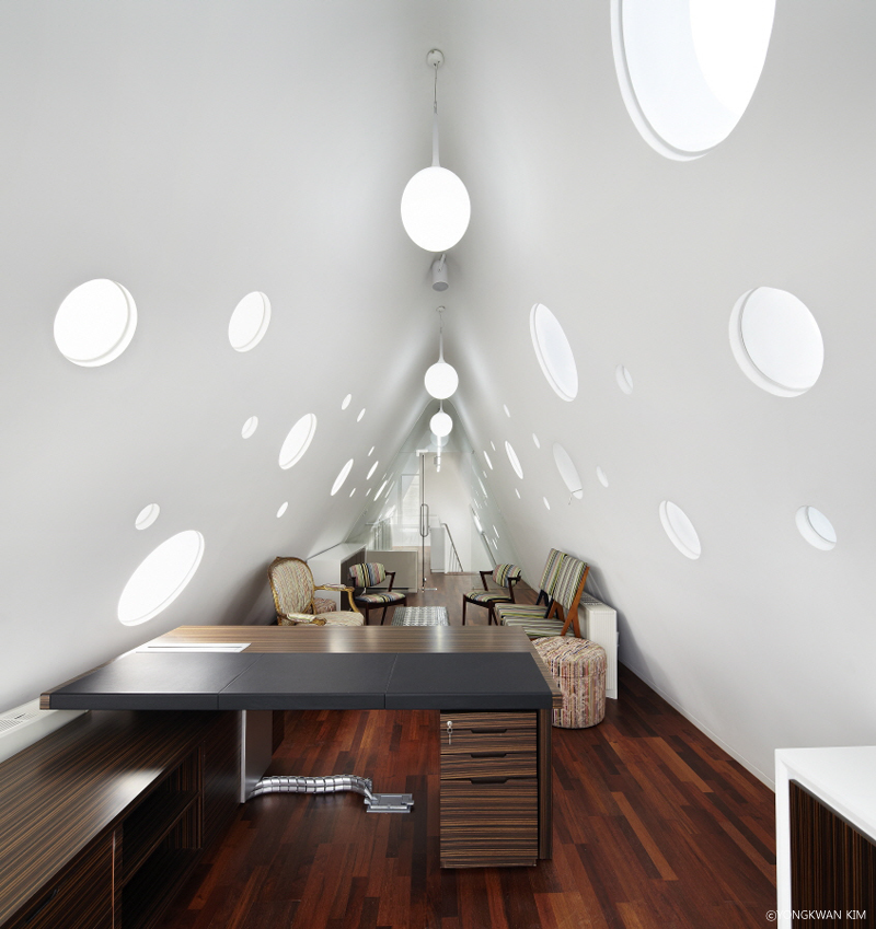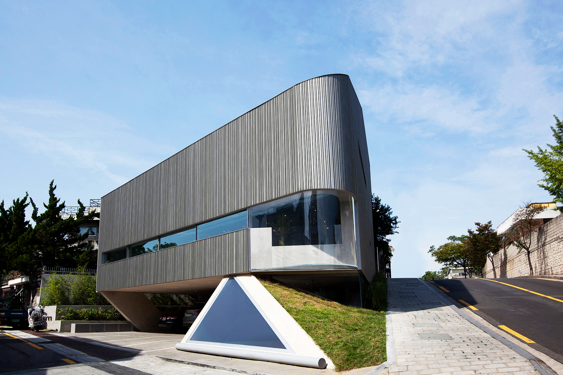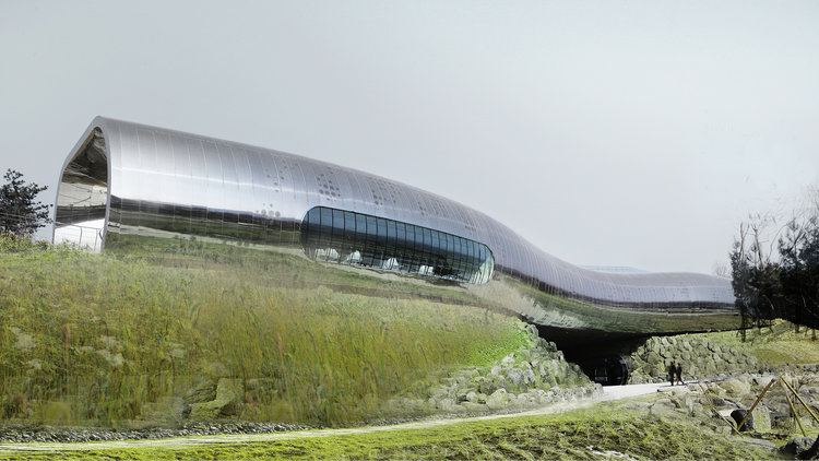 Départ en bus pour la visite du Musée de la préhistoire Jeongok-Ri par X-tu Architect, 2010.