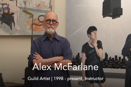 Alex McFarlane has been a member of the Silvermine Guild and instructor at the Silvermine School of Art for over twenty years. He is a graduate of the School of the Arts, Columbia University. Throughout a thirty-year career, Alex has exhibited extensively in the New York art world and has been the subject of articles and reviews in Arts Magazine, Art Forum and the New York Times. He is the recipient of the Louis Comfort Tiffany Foundation award and the New York Foundation for the Arts award. He is a fellow of the Augustus St. Gaudins Foundation. Alex is represented in many corporate collections including General Electric, Prudential and Morgan Chase. He is represented in many private collections and in many public collections including the William Benton State Museum of Connecticut, the Albright-Knox Art Gallery, the Aldrich Museum and the City of New York.