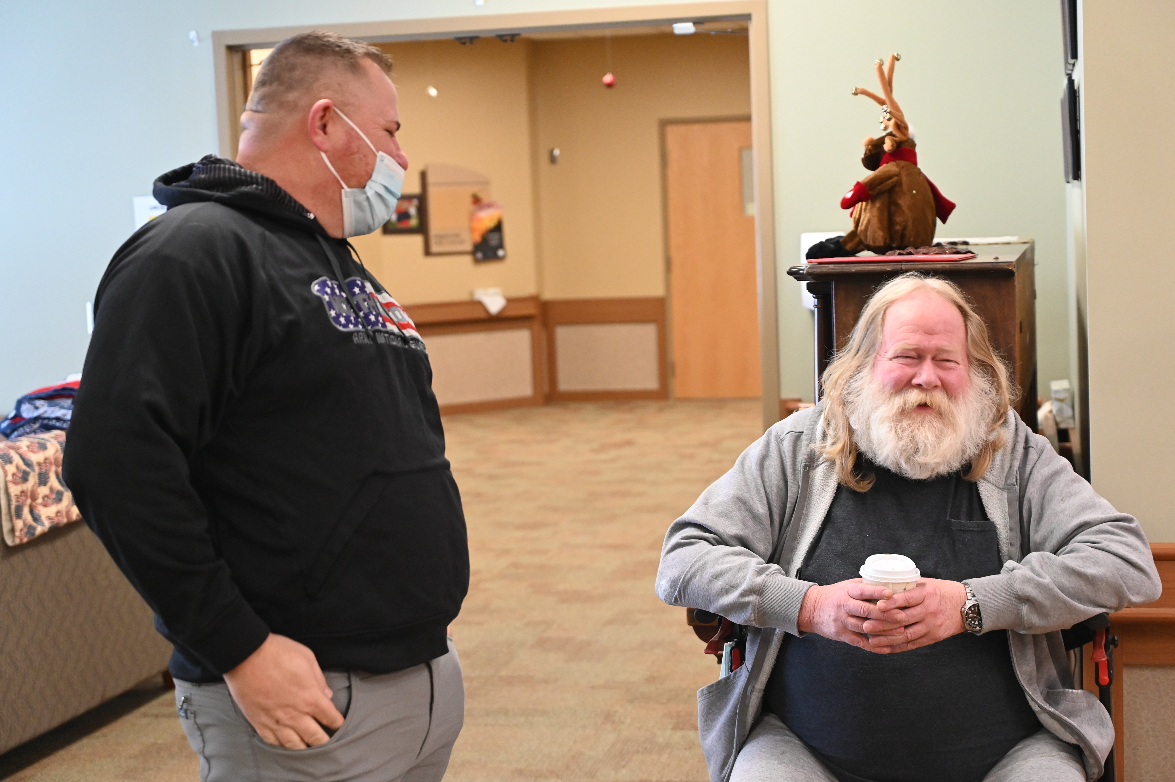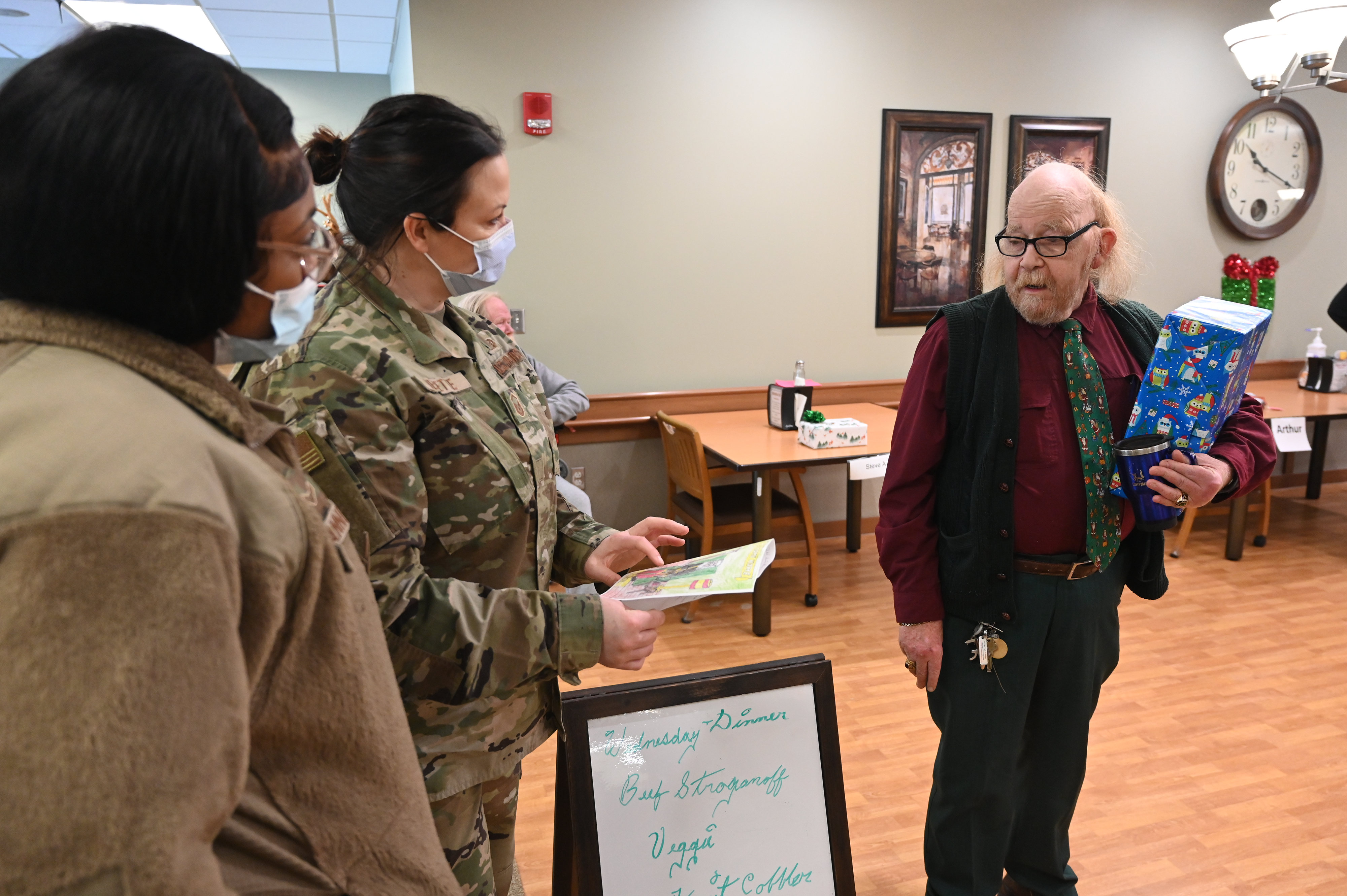 N.D. Air National Guard members visited Veterans and spouses at the N.D. Veterans Home in Lisbon, Dec. 21, 2022. For over 20 years, N.D. Guard members collect and deliver gifts and spread holiday cheer at the home. (National Guard story and photos by Senior Master Sgt. Michael Knodle, 119th Wing Public Affairs)
