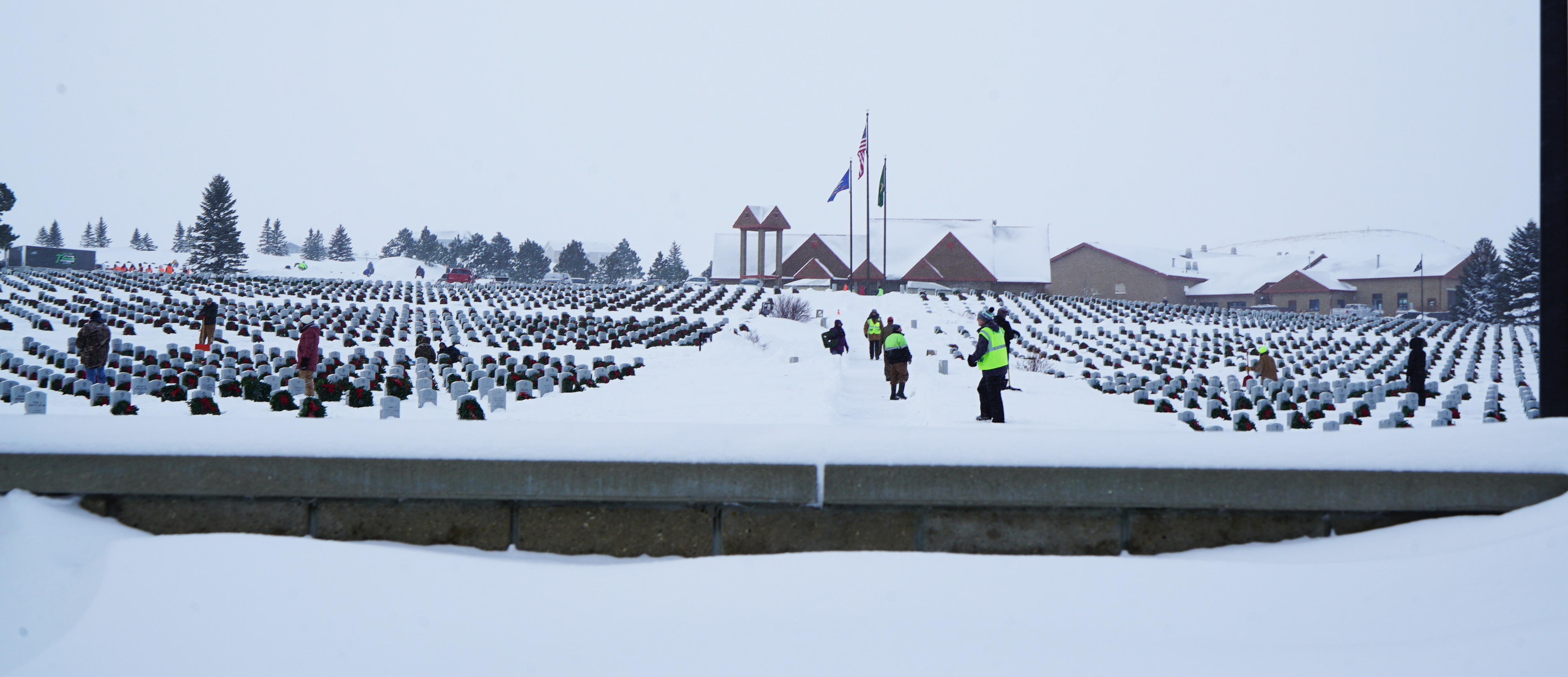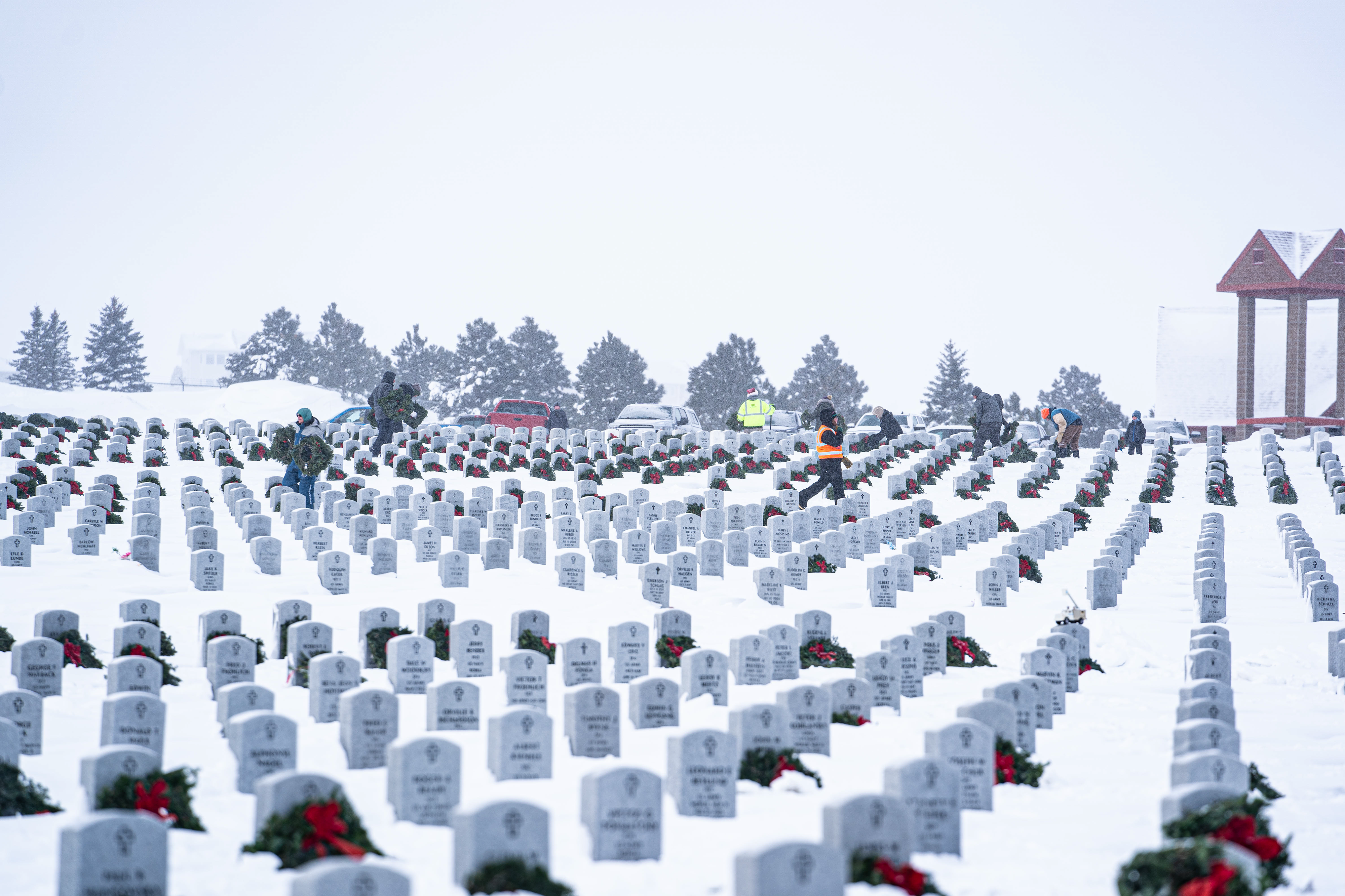 Temperatures bottomed out at minus 12 degrees Fahrenheit, as an estimated 500 volunteers placed wreaths on each of the more than 8,000 graves at the cemetery by 4 pm.