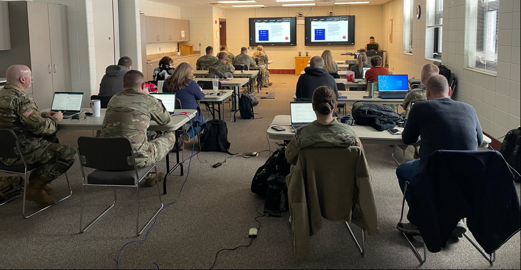Over 24 N.D. state employees along with N.D. National Guard (NDNG) members attended a two-day National Guard Bureau-sponsored class on Emergency Management Assistance Compact (EMAC) at Fraine Barracks, Bismarck, N.D., Dec. 19 to 20, 2022. The NDNG Joint Operation Center hosted the training under the direction of Lt. Col. Dan Murphy. (National Guard story and photo by Lt. Col. Steve Bohl, deputy direction, J5/9)