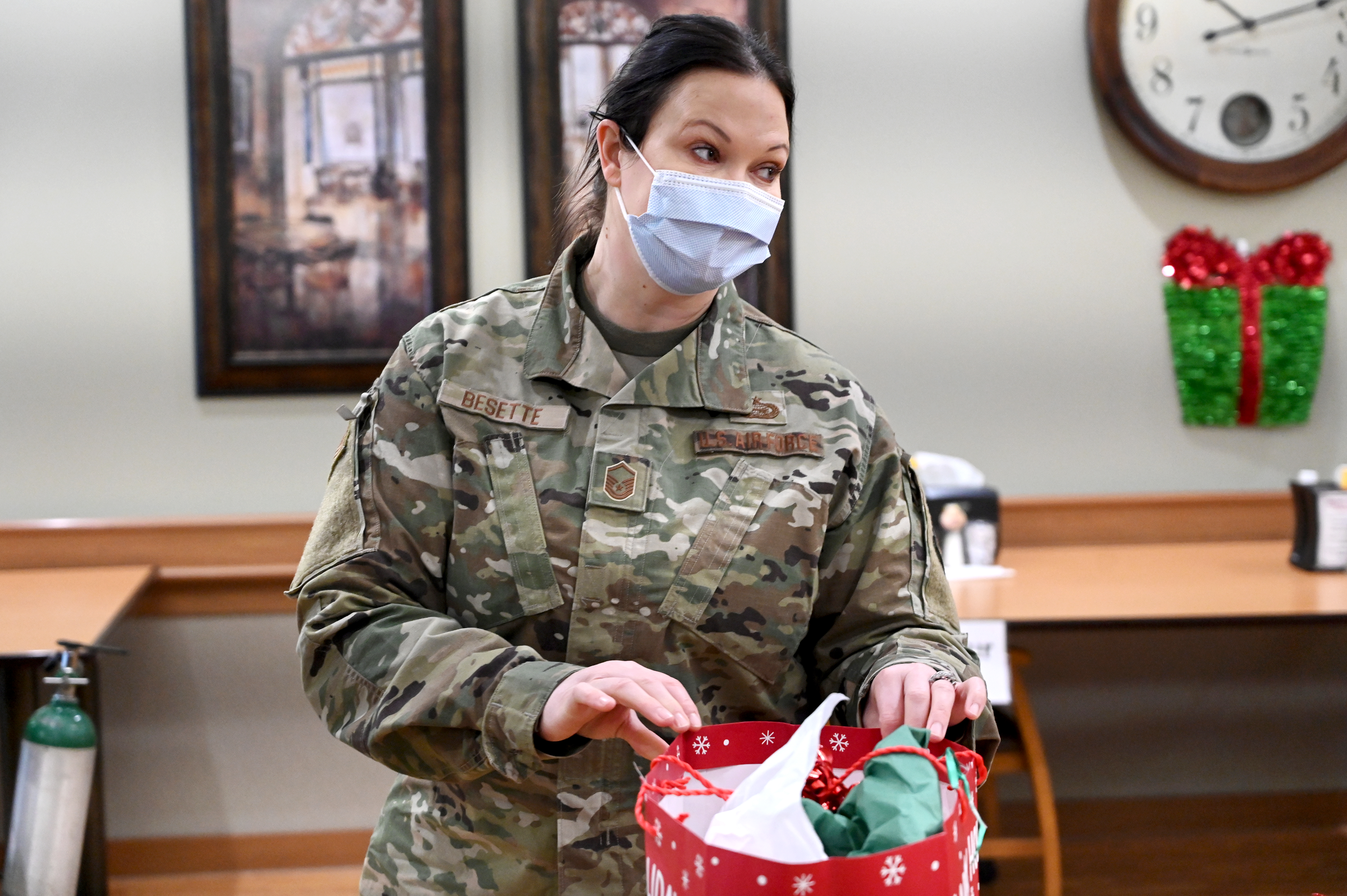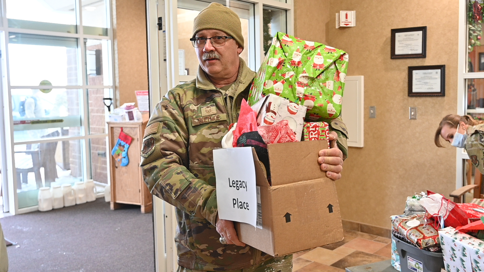 This annual responsibility rotates between the N.D. Army National Guard and Air National Guard components. The gifts are donated by Guard members based on requests by each resident. Service members visit with the residents and assist in the distribution of the gifts.