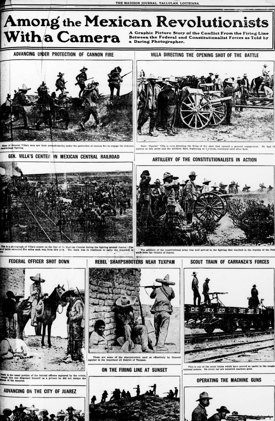 Francisco “Pancho” Villa y Pascual Orozco emergieron como dos figuras revolucionarias. Villa era el gobernador del estado de Chihuahua, en el norte de México. Orozco fue un estratega militar bajo el mando de Díaz y desertó al ejército revolucionario de Madero.