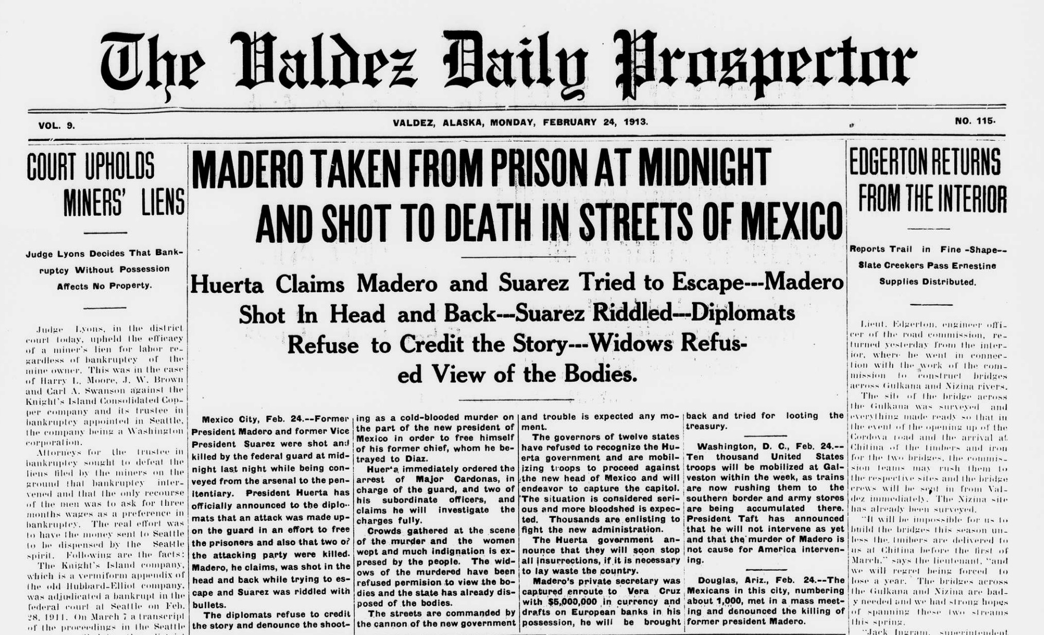 Madero fue asesinado, Villa estaba exiliado en El Paso, Huerta estableció una dictadura militar y Zapata libró una revolución campesina en el sur.
