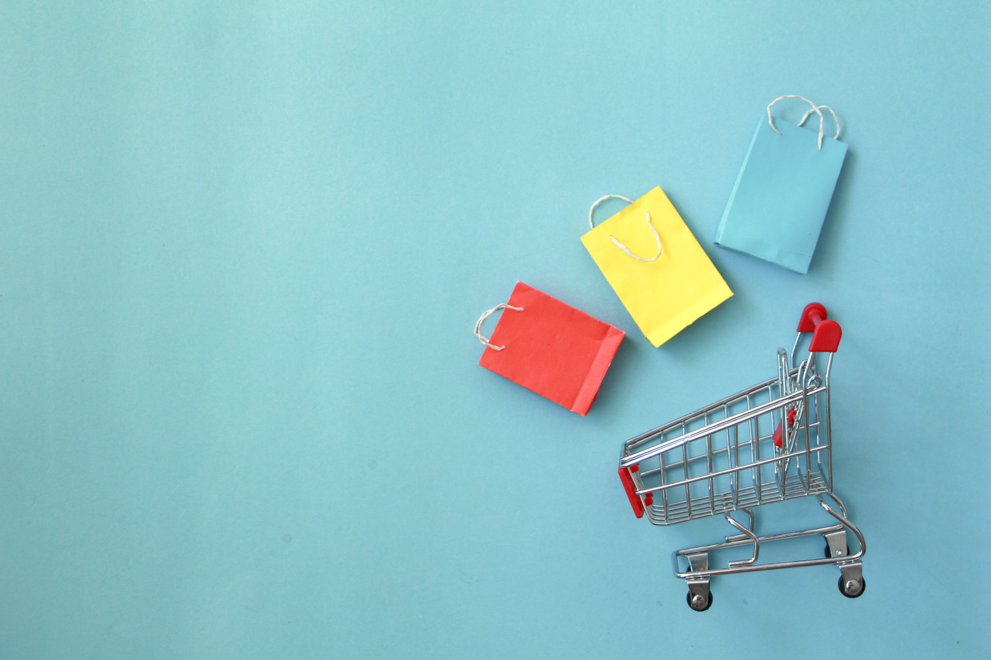 Created with an image by jajam_e - "Shopping cart with colorful paper bag with copy space on blue background. "