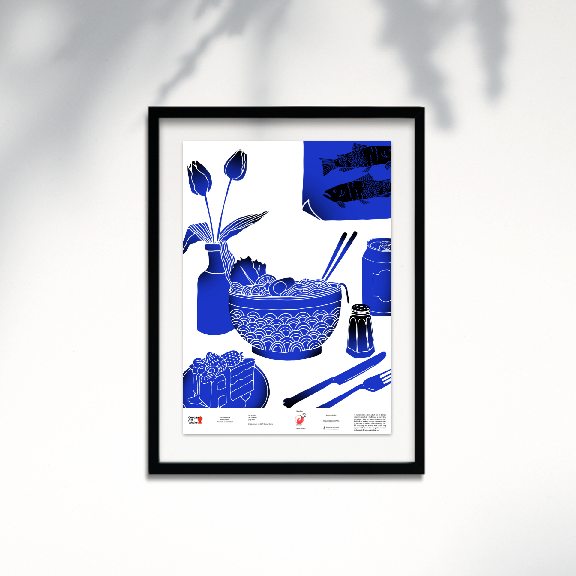 I chose this picture because it is the description of a perfect meal for me: Ramen, beer and something sweet for dessert. Last year, I spent a lot of time with a friend in an apartment in Berlin. We were both far away from home and to pass the quarantine we played cards and ate. We tried many new dishes and kept improving our cooking skills. When I started drawing as a child, I was influenced by Japanese anime. I watched a lot of manga, like Sailor Moon or Slum Dunk when I was in school in Santiago de Chile. I think they inspired my work as a graphic designer, but also my interest in Japanese food may have come from that. So last winter we made Ramen ourselves and found that it's easy to make and really delicious. I hope this poster finds a place in a kitchen - as a reminder to indulge in good food, to cook your favorite dish or to treat yourself with a Pie de Limón. It doesn't take that much to feel at home.