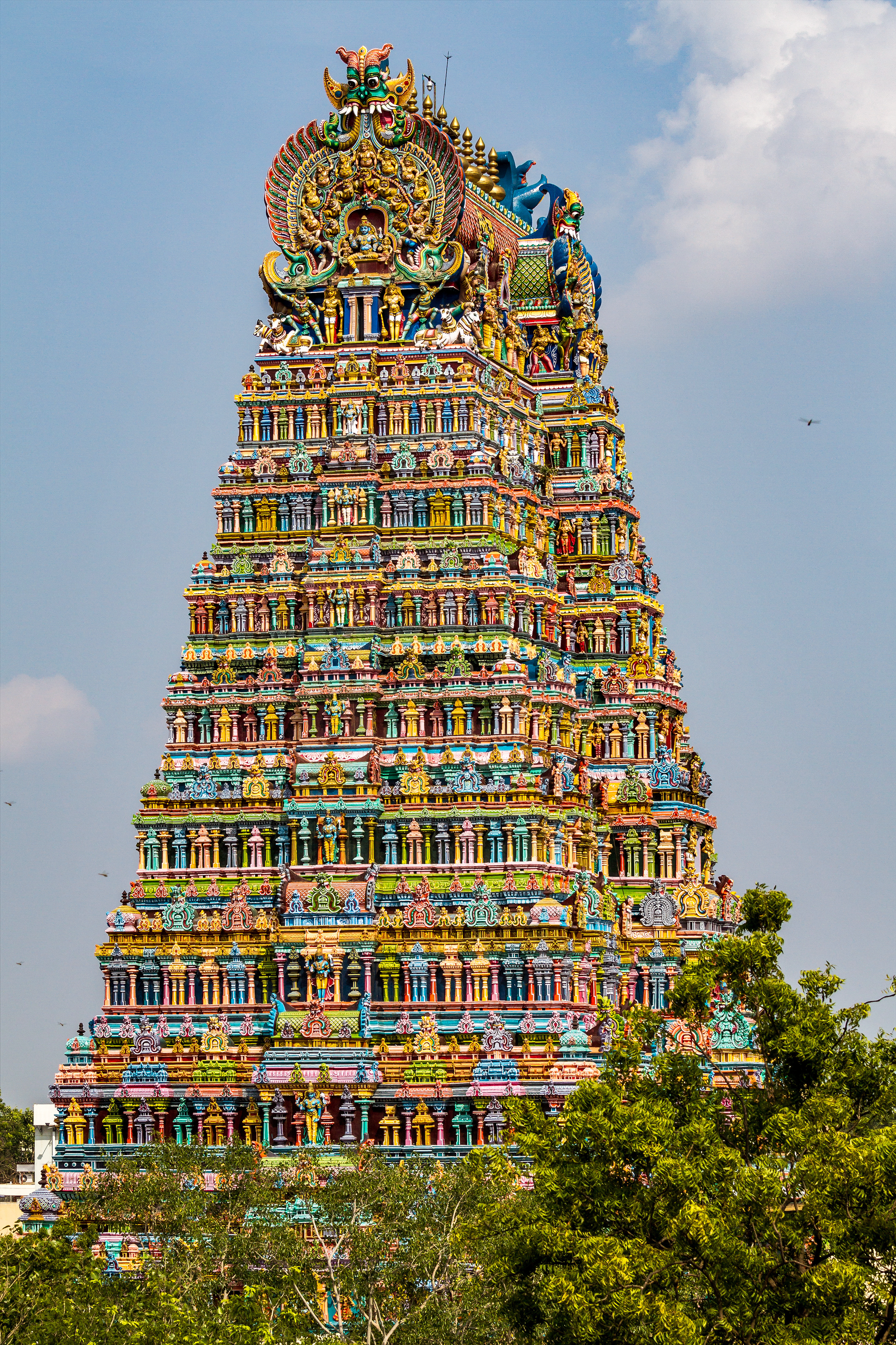 Chennai, previously called Madras by the British East India Company. They acquired the settlement from the local Nayak rulers in 1639. Legend has it that the name Madras stands for “Mad King Stum” A British insider’s joke about the Nayak king who sold the city for a penny. The truth is more obscure and may have come from the name of a near by fishing village called Madrasapattinam or maybe from the Portuguese. As with many things Indian, it depends on who you ask. Here, listening to our guide decode the city’s colonial evolution via its distinct Indo-Saracenic architecture — a vibrant blend of Indian, Islamic and Gothic styles, it is quite impressive. After visiting the colorful, 1500 year old temple of Lord Shiva, (one of the three Hindu gods: Brahma the creator, Vishnu the preserver and Shiva the destroyer) with ancient sculptures and beautiful painting covering the ceilings and walls, we are still as confused as we were before about Shiva’s many different reincarnations and avatars.