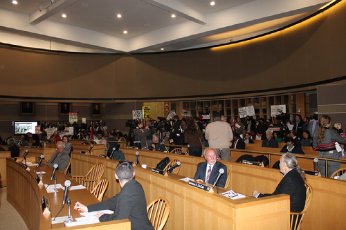 Upon adjourning the meeting, Walker-Myers and several alders remained in the chambers to speak with the protesters.