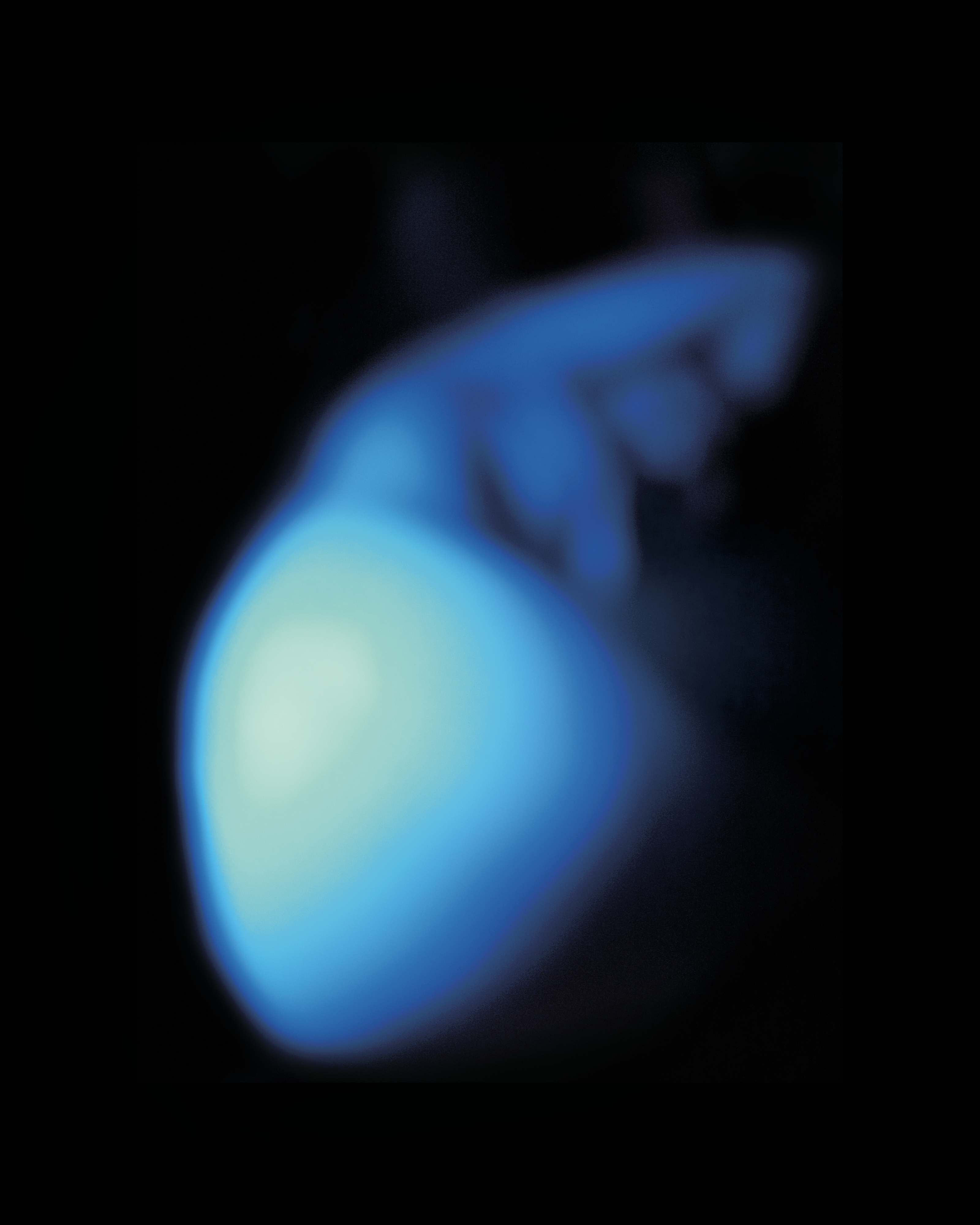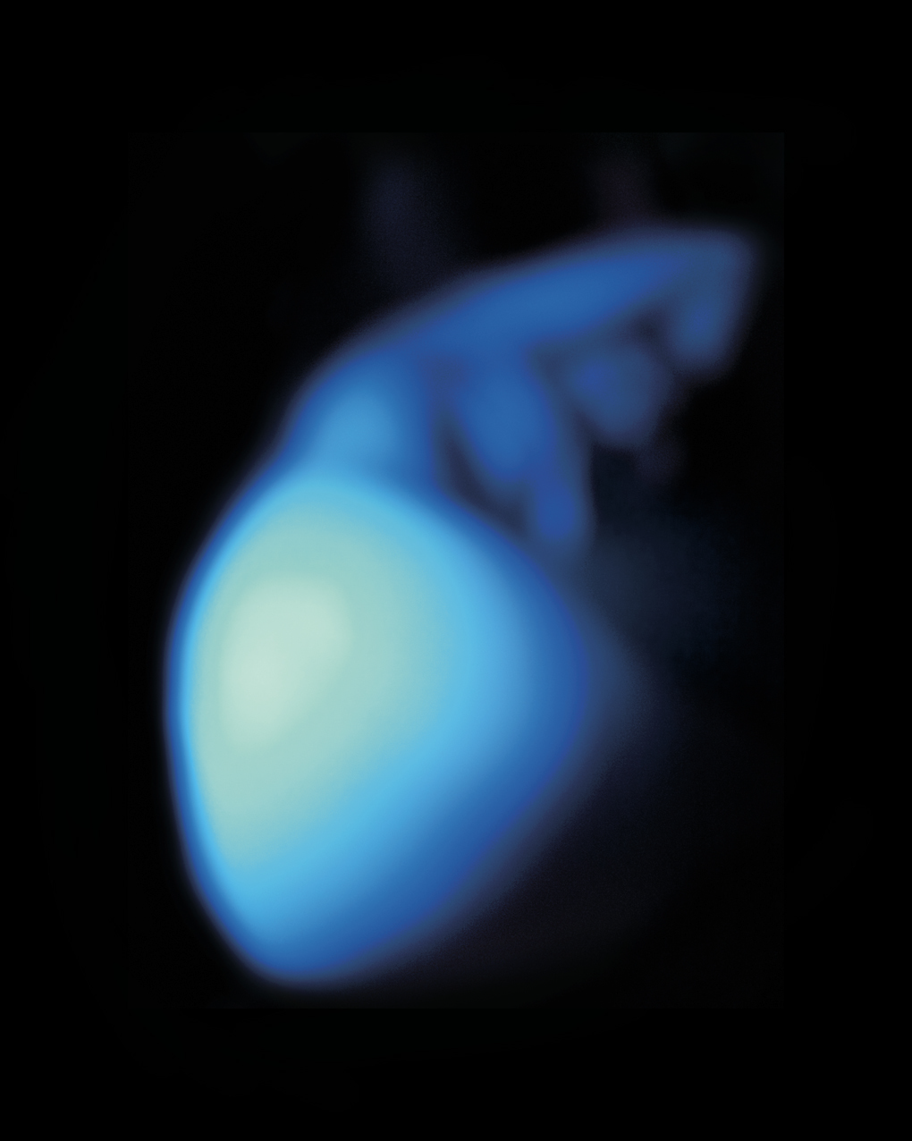 Complex balance between the desire to give shape to light and, as a declaration of intent, to bring out the shape through the use of light. Shape that emerges, according to the artist, from a mixture between the human species and nature, between the inside and the outside, between physicality and spirituality.