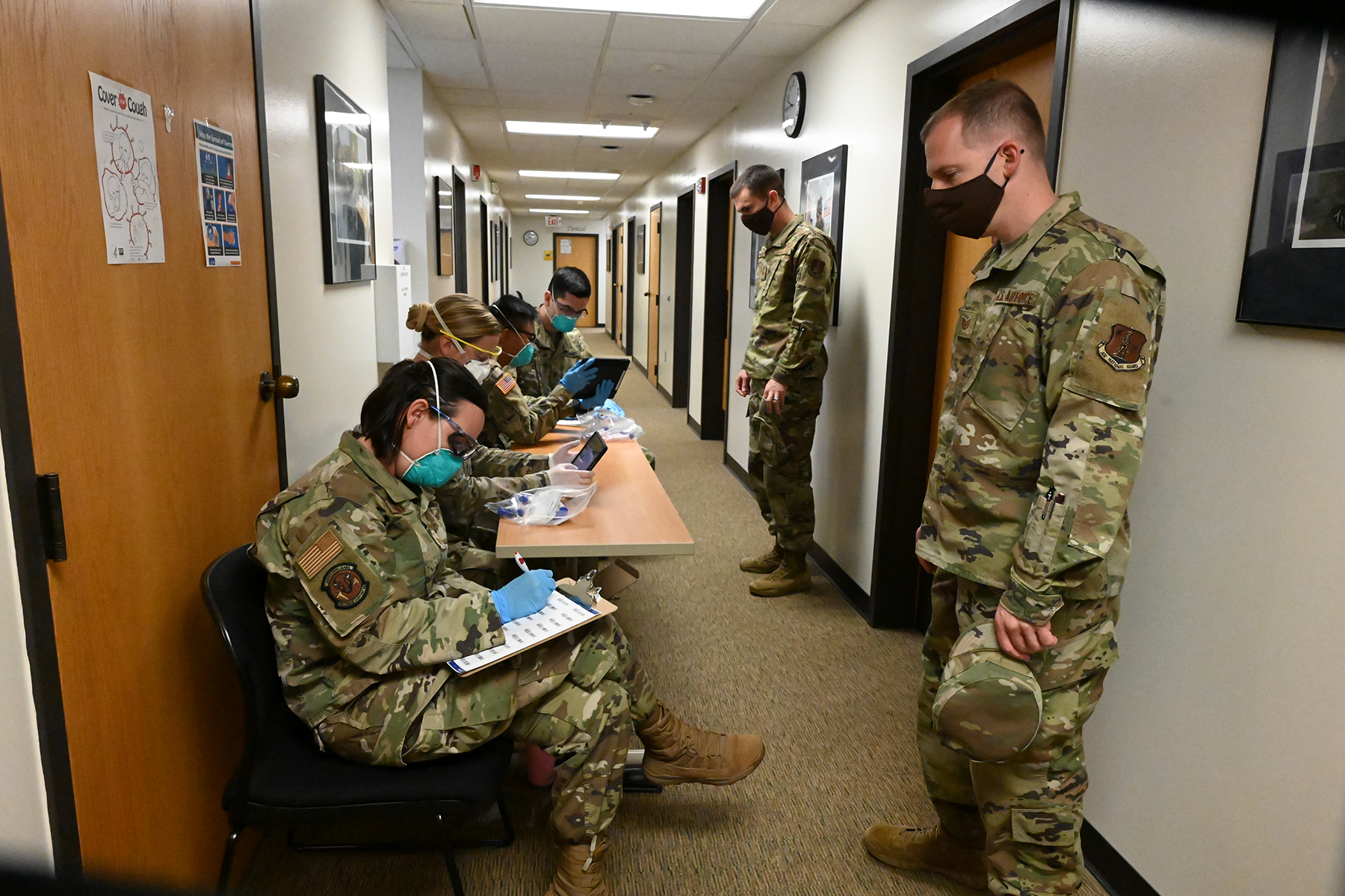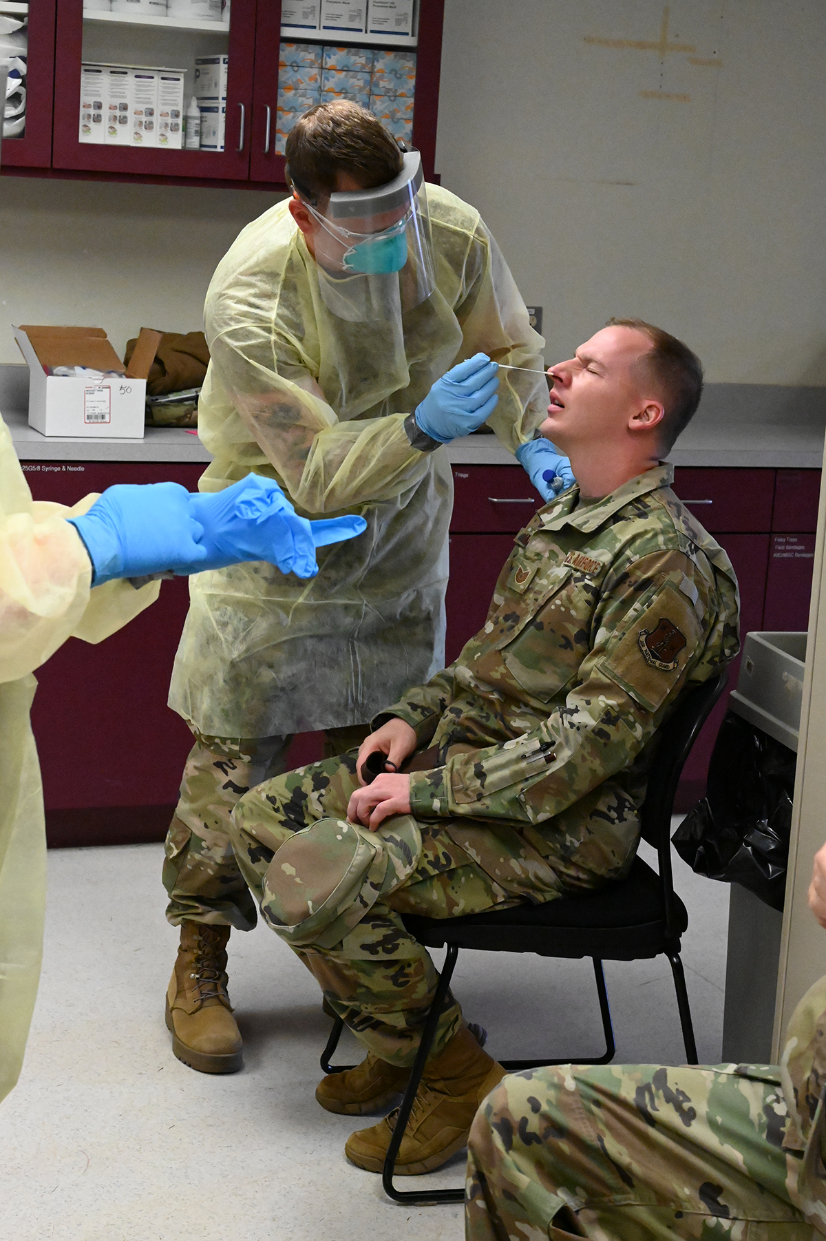 Each Friday Airmen and civilian employees can elect to undergo COVID-19 testing at the 119th Medical Group clinic at the N.D. Air National Guard Base, Fargo, N.D. About 70 Airmen participated in the voluntary testing on Oct. 2, 2020. Over 250 N.D. National Guard Airmen and Soldiers continue to serve on COVID-19 duty. Tasks range from administering tests, transporting specimens to the state laboratory in Bismarck, as well as providing direct support to the laboratory. (U.S. Air National Guard story and photos by Chief Master Sgt. David H. Lipp, 119th Wing)