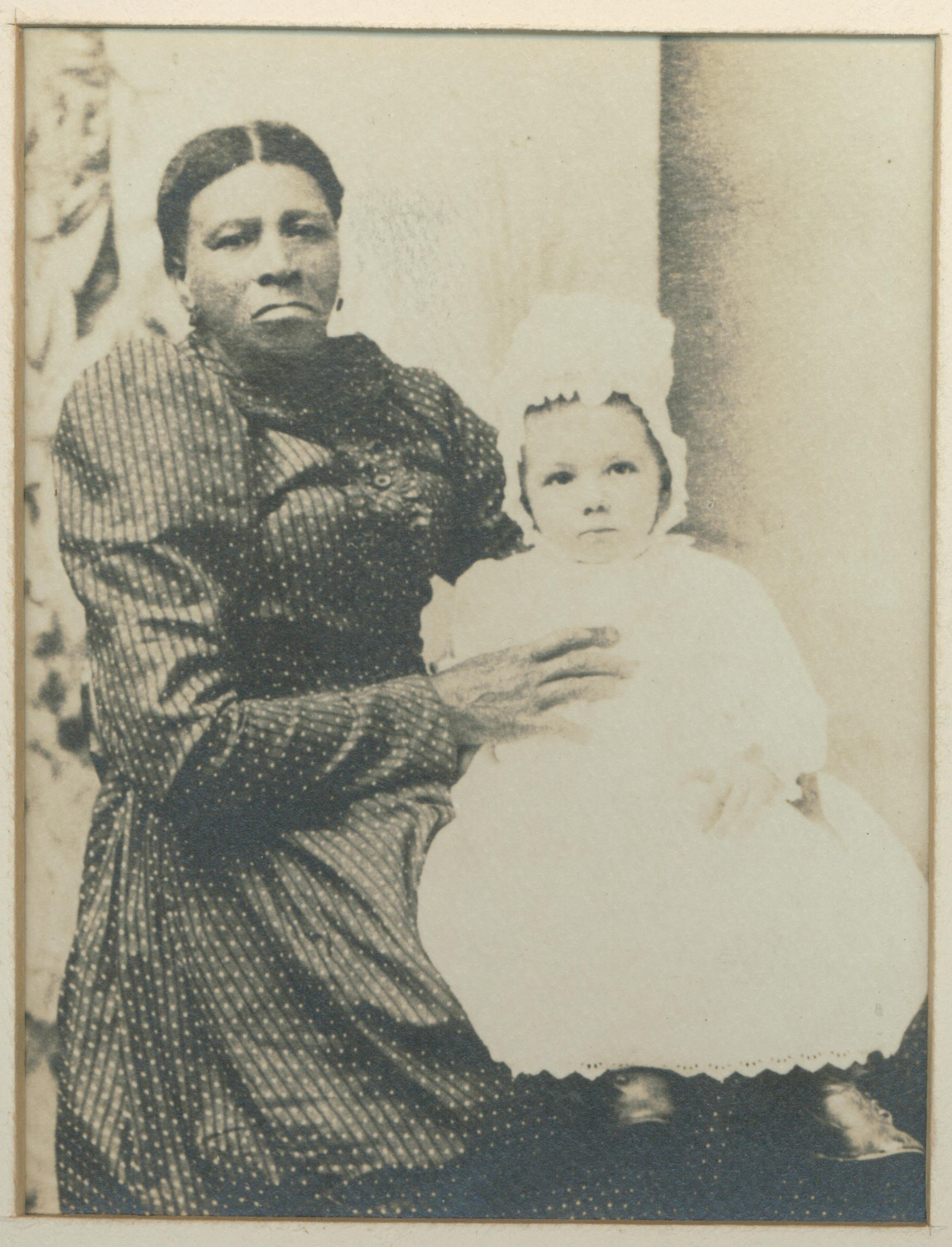 Photograph: Susan Calhoun Clemson Richardson holding Byron Herlong (ca. 1895 ?). Mrs. Richardson was enslaved by John C. and Floride Calhoun and given as a gift to their daughter Anna upon Anna's marriage to Thomas Green Clemson. After the Civil War, Mrs. Richardson was employed as a caretaker for the Herlong family children for three generations. She died in Aiken, SC, in the early 1900s. Her burial site is currently unknown. (Source: Clemson University Libraries' Special Collections & Archives. Used with permission.).