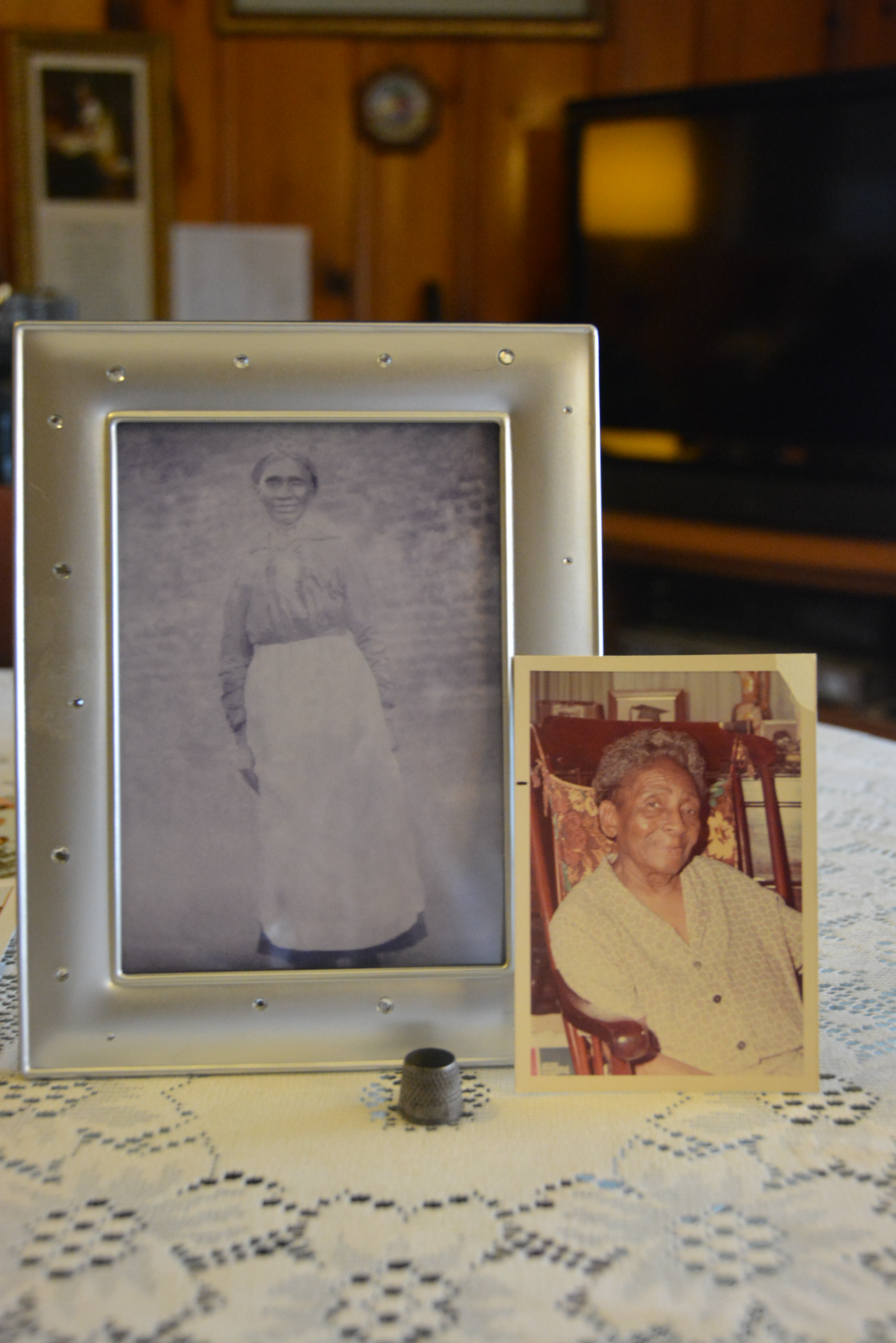 Photographs (l to r): Matilda Brown, who was enslaved on the Fort Hill Plantation, and her thimble (circa early 1900s); Harvey Gantt registering for classes on January 28, 1963; Sikes Sit-in in April 2016 (Sources: Eva Martin Personal Collection, Harvey Gantt Papers, Clemson University Libraries' Special Collections & Archives, and Edith Dunlap. Used with permission.).