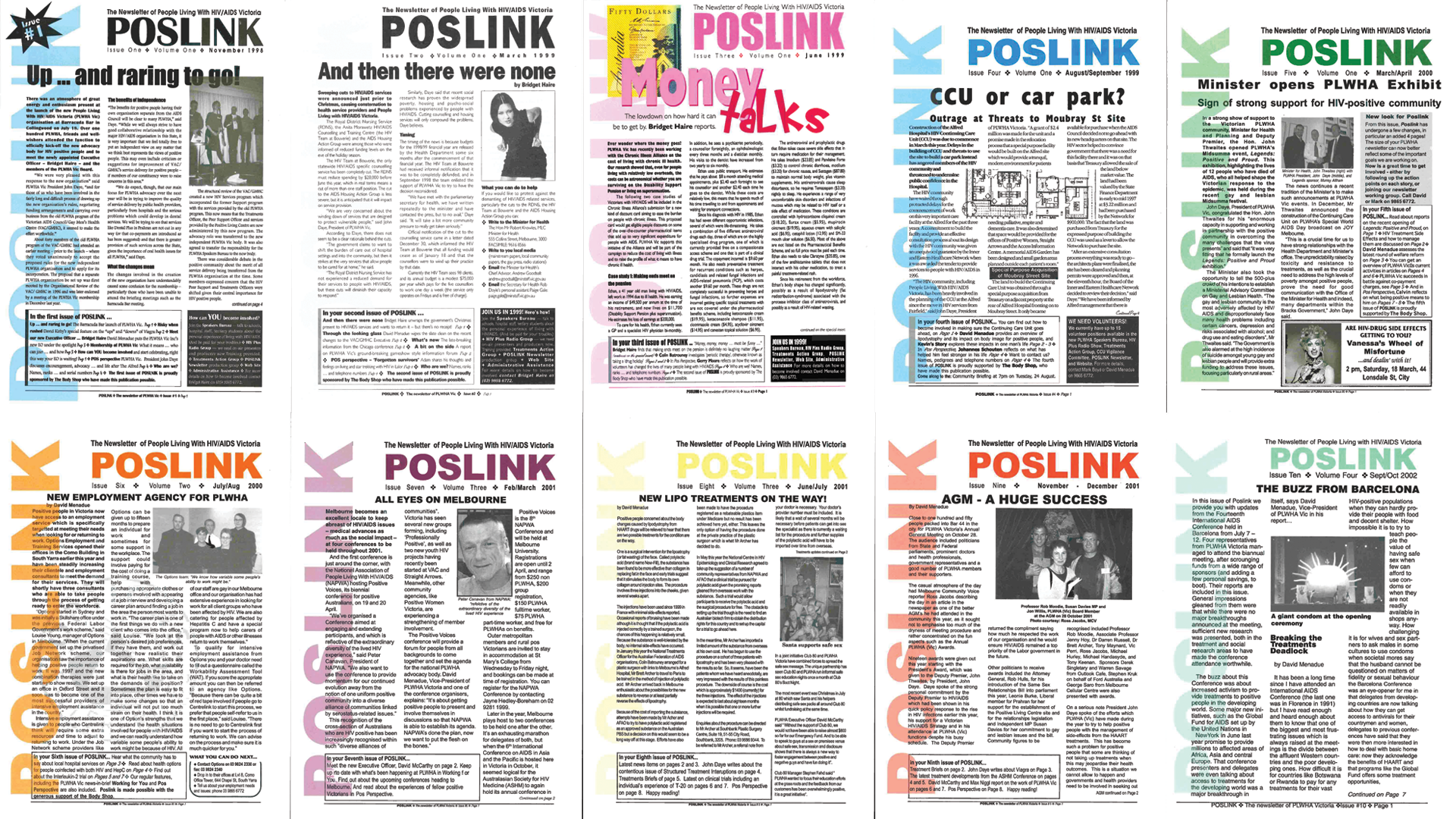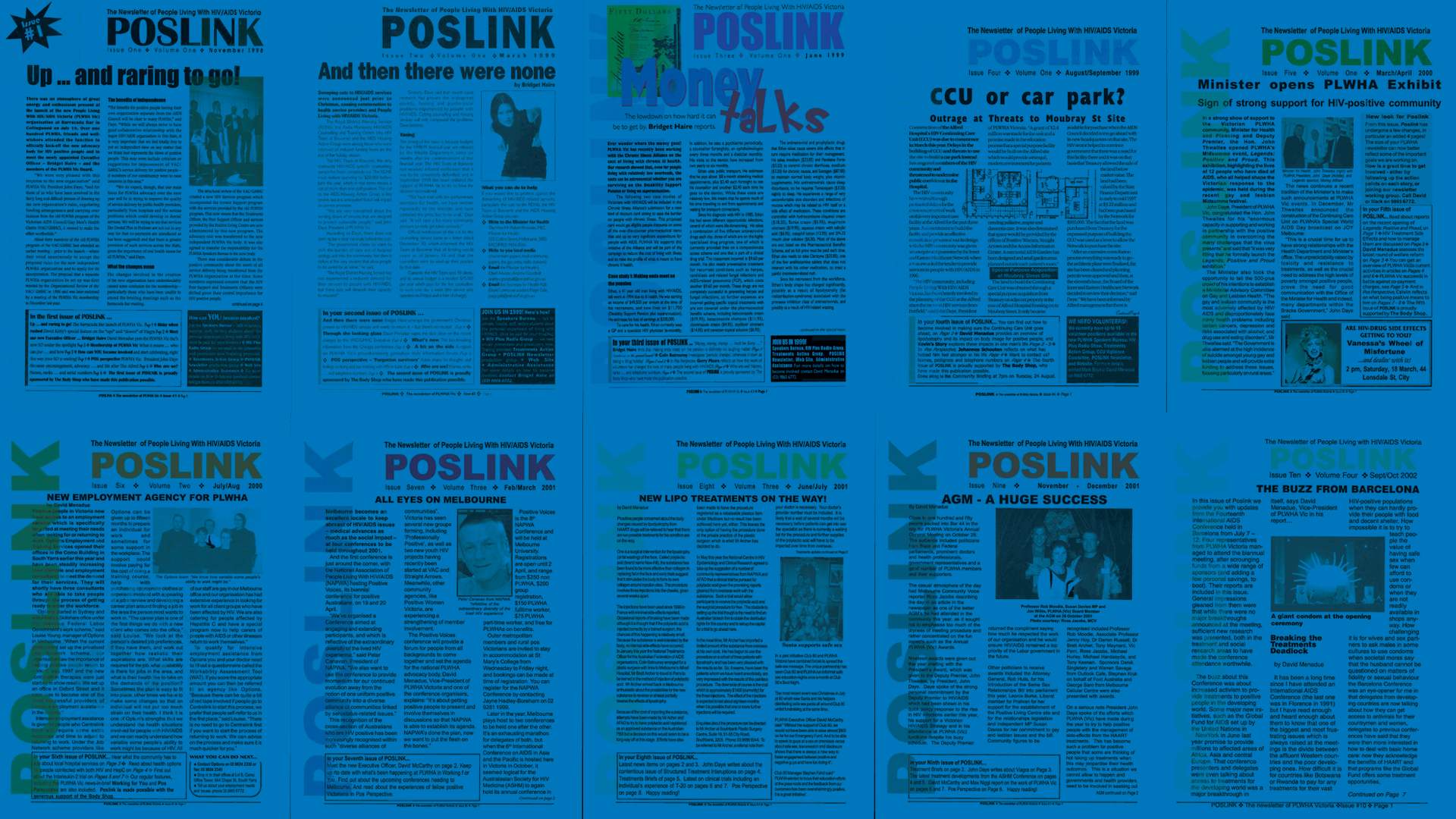 In 1998 Living Positive Victoria named its newsletter Poslink. Contributors were many as we sought to provide our members with treatment information, medical advice, conference reports, articles from dieticians and naturopaths. Reading those early editions was a compelling journey as the new treatments were providing hope to so many.