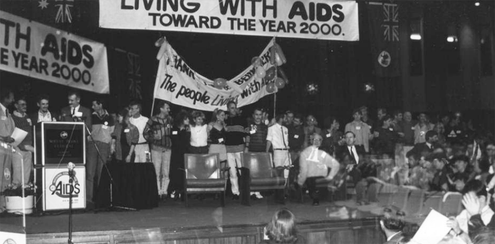 Who could forget the closing plenary of the third Australian AIDS Conference in Hobart in 1988? A group of people walked onto the stage and declared that they were HIV positive and that they were no longer content to remain invisible (including Bev Greet, co-founder of Positive Women). Their stories, their bravery, started more conversations. They certainly grabbed the media’s attention. Suddenly, it seemed the public saw real people with real stories. They were peers deciding to speak out, peers supporting each other and declaring that being silent equals death.