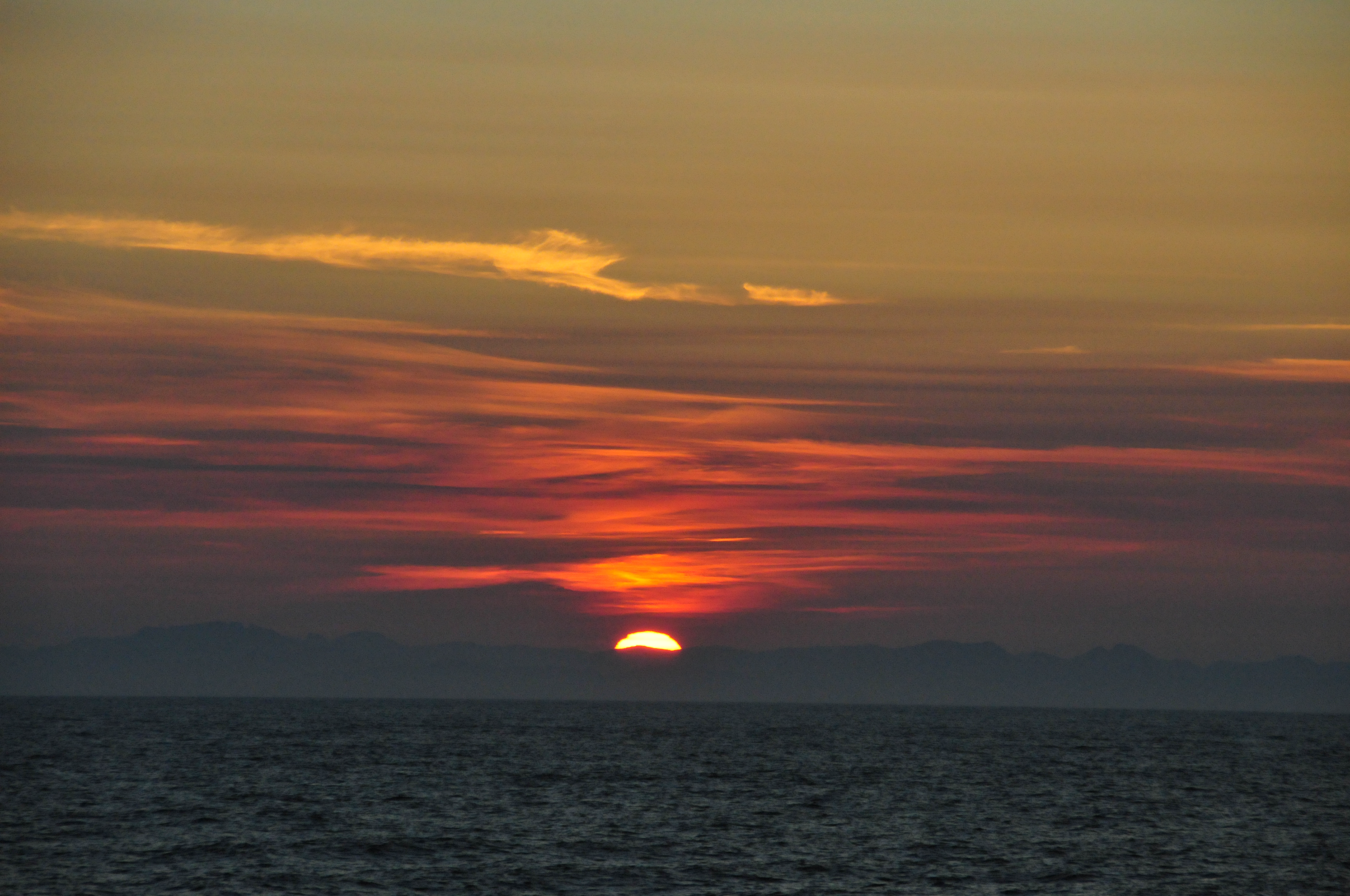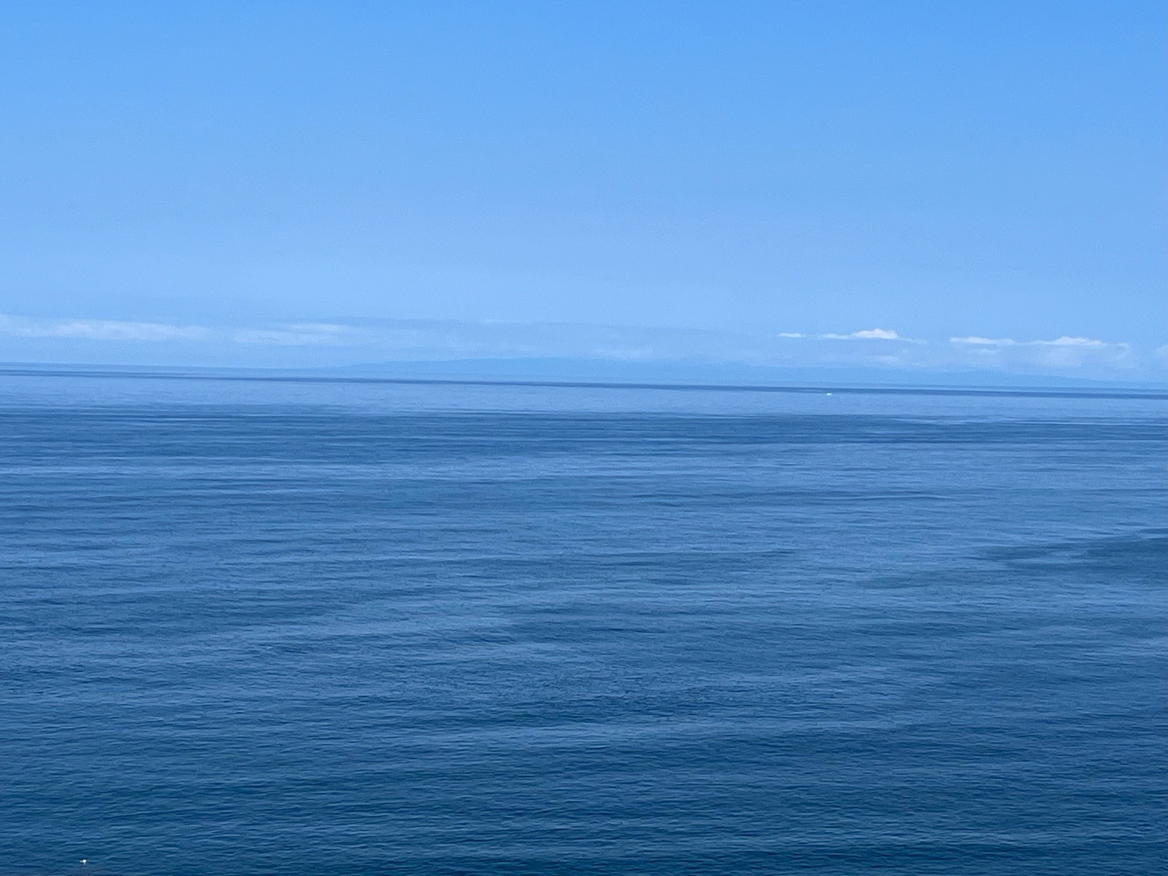 この写真は、風がほとんど吹いていない海象条件にもかかわらず、津軽海峡の中央で縞状に連なる波群を撮影したものです。実は、それらの海面下には大振幅の内部波が存在しており、内部波の収束域の海面が激しく波立っているのです。
