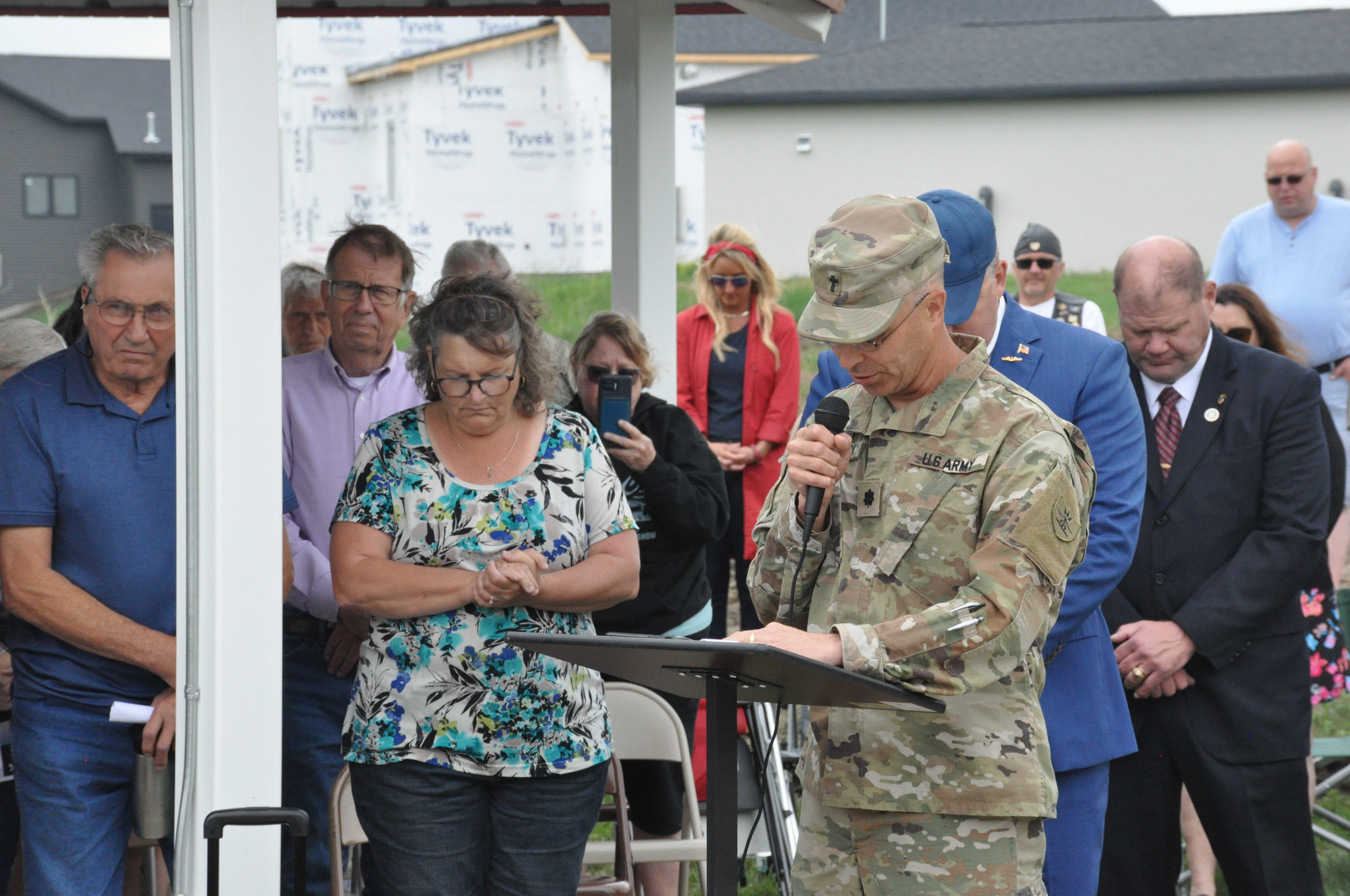 On June 10, 2023, Maj. Gen. Al Dohrmann, N.D. National Guard adjutant general, and Command Sgt. Maj. Jason Magnuson, N.D. National Guard senior enlisted leader, led a contingent of N.D. National Guard Soldiers and Airmen to the Heroes Park dedication ceremony in Bismarck, N.D. The park, located at 5609 Smette Bend, is owned and operated by the Bismarck Parks and Recreation District. (Story and photos courtesy of Bill Prokopyk, U.S. Army retired)