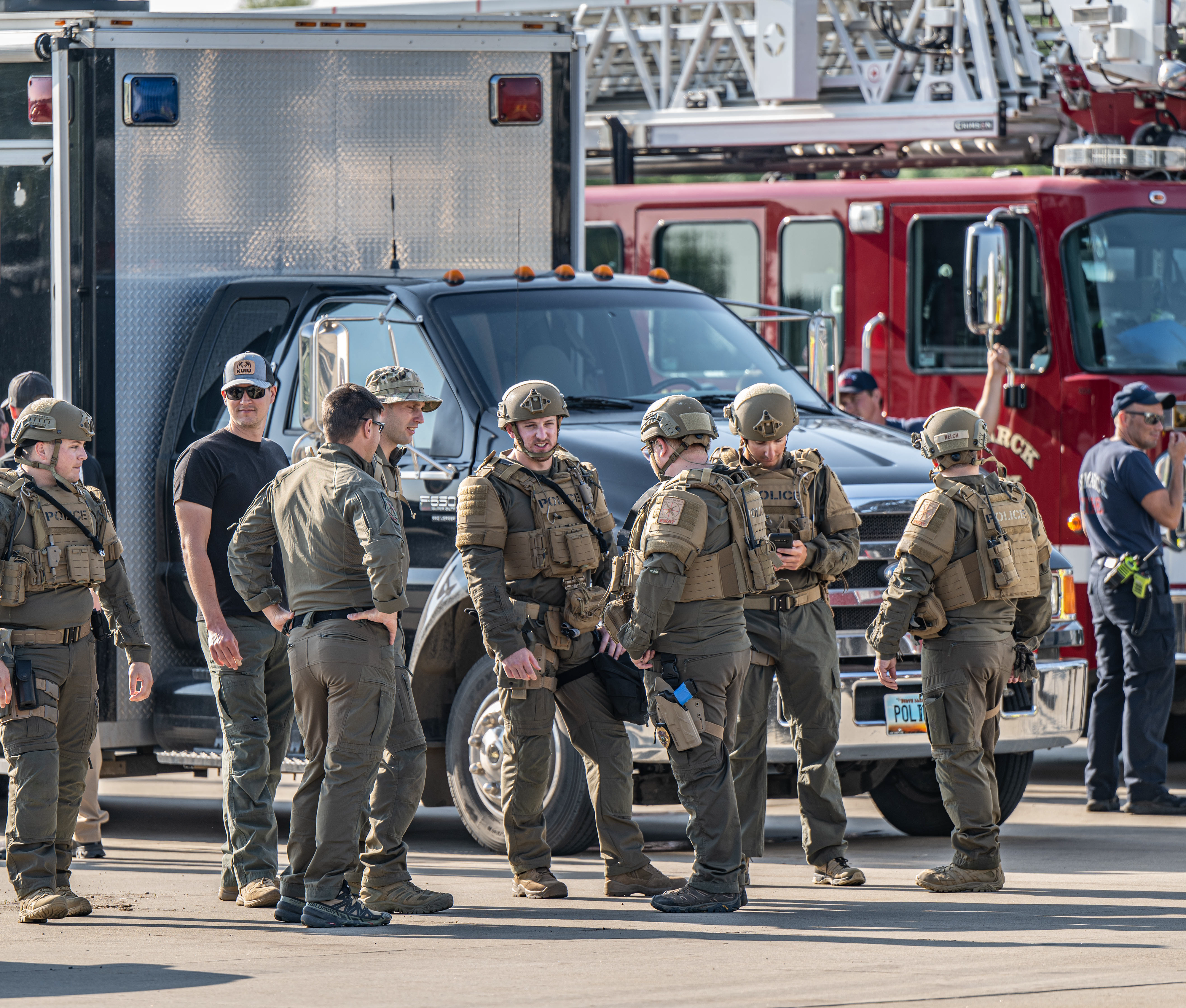 Representatives from multiple local and state agencies, including the North Dakota National Guard and Bismarck Police Department, participated in an active shooter exercise at the Raymond J. Bohn Armory, Bismarck, N.D., June 8, 2023. (National Guard story by Eric Jensen , North Dakota Strategic Communications Chief) (National Guard photos by Staff Sgt. Sam Kroll, N.D. National Guard Visual Information)