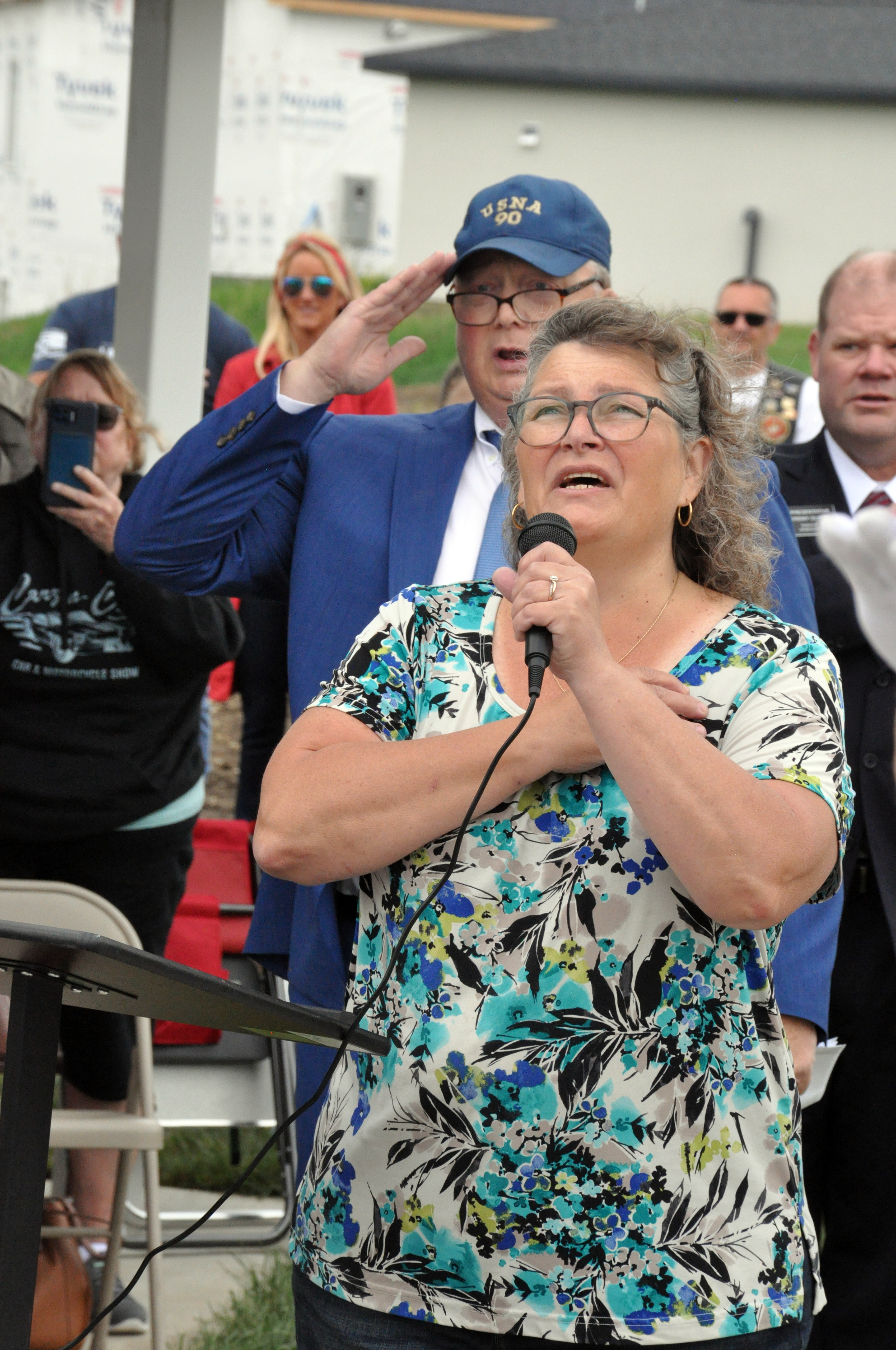 The Bismarck Amvets Post #9 presents the colors during the performance of the National Anthem at the Heroes Park dedication ceremony, June 10, 2023, Bismarck, N.D.