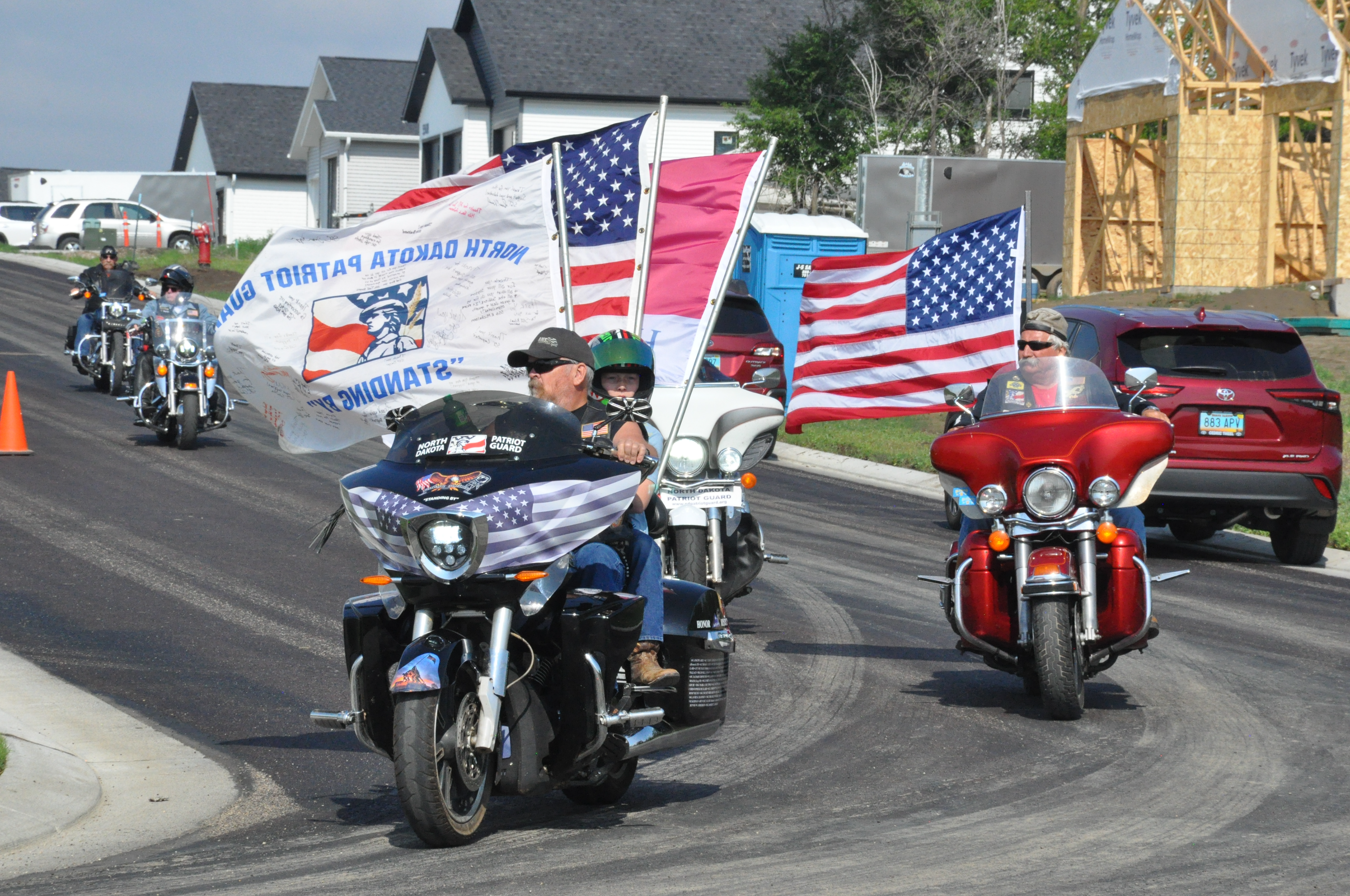Arlen Halverson, left, leads a group of motorcyclists of the N.D. Patriot Guard to the dedication ceremony of Heroes Park, June 10, 2023, Bismarck, N.D.