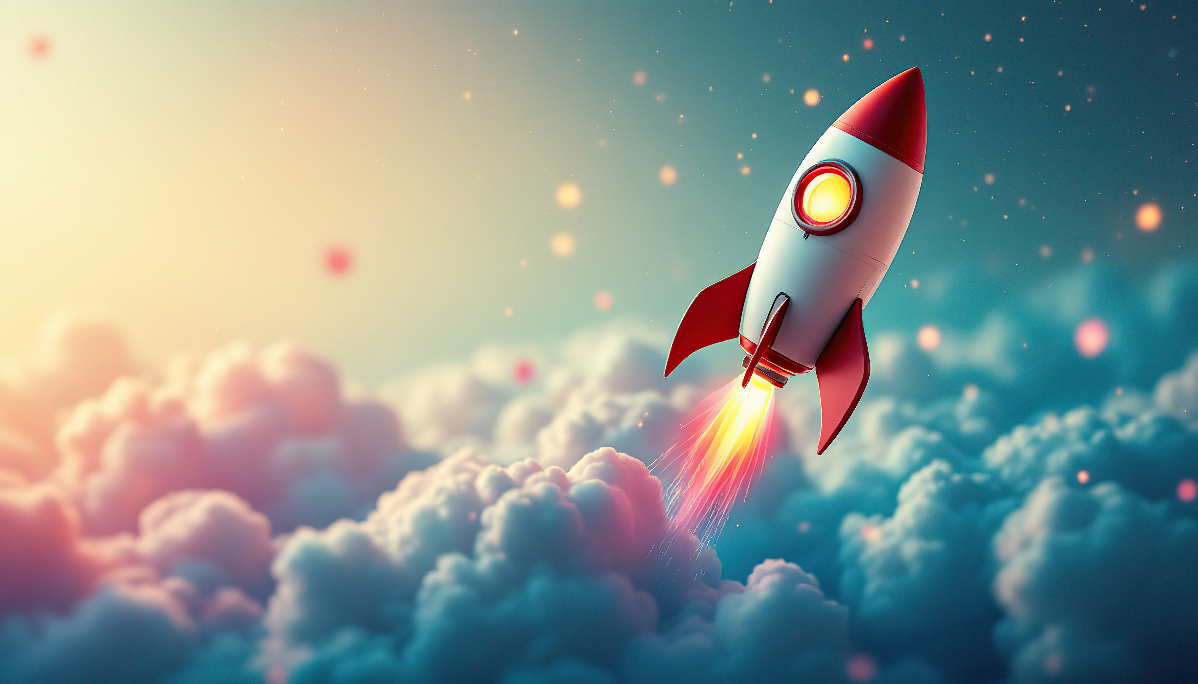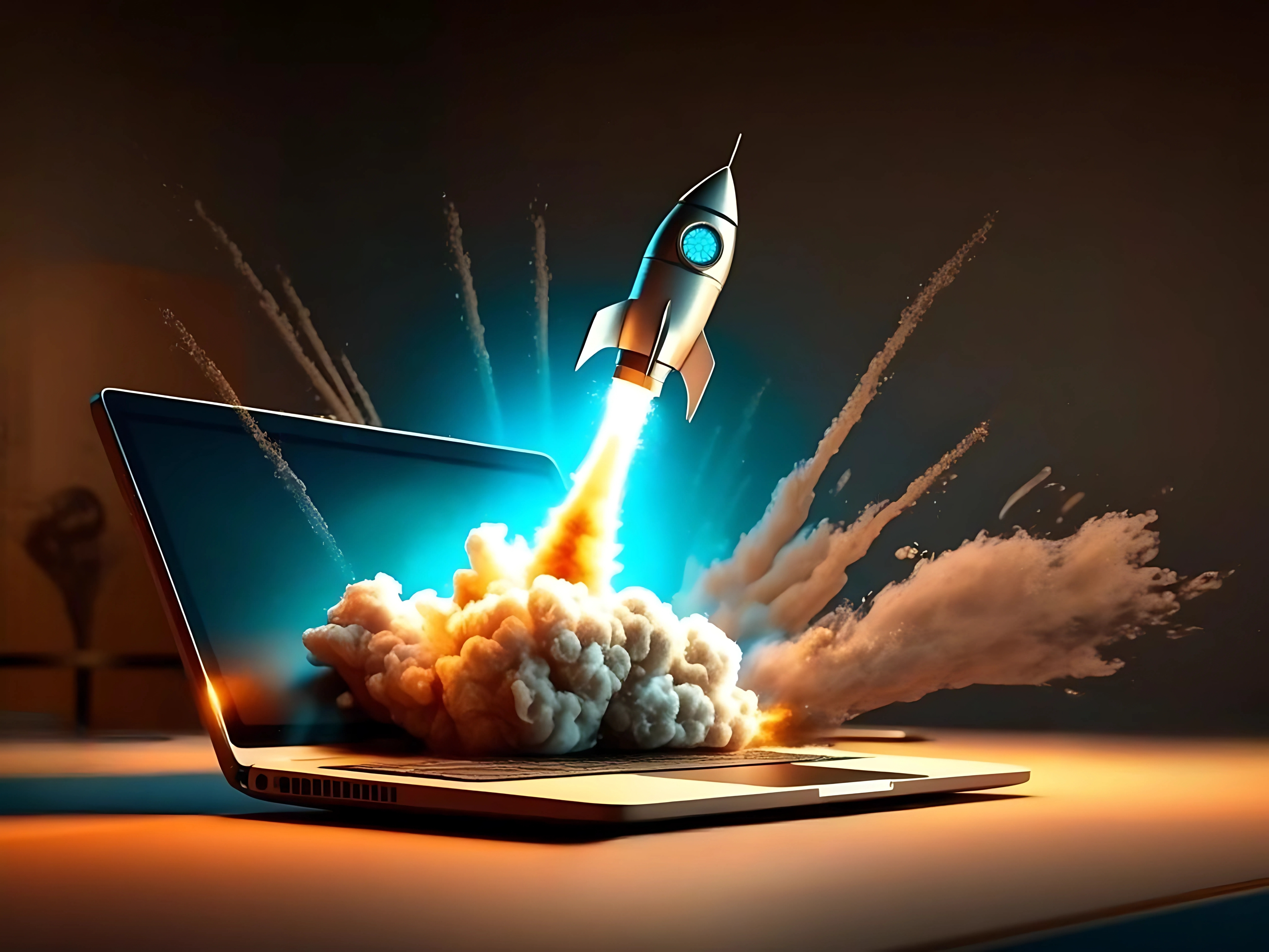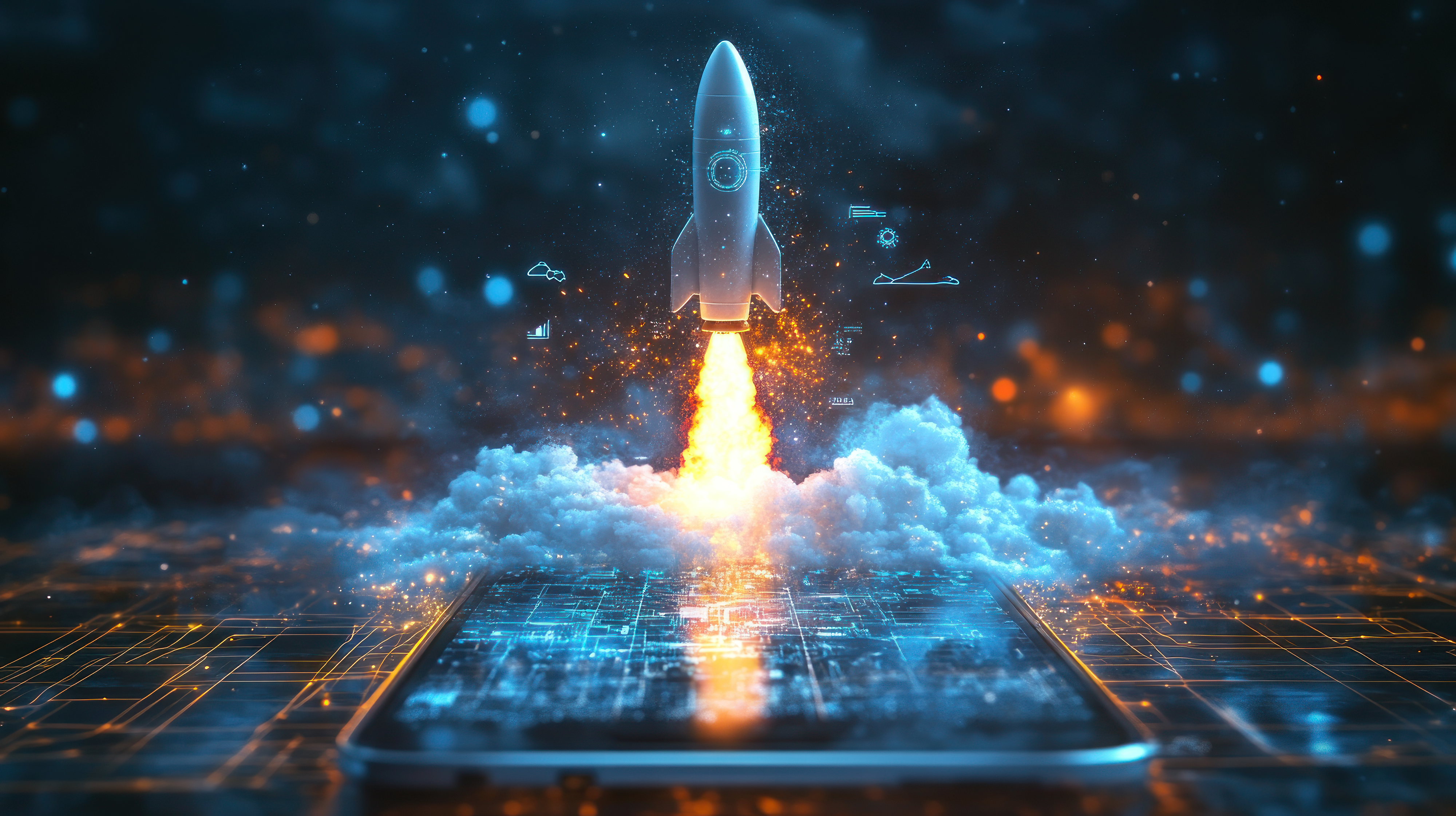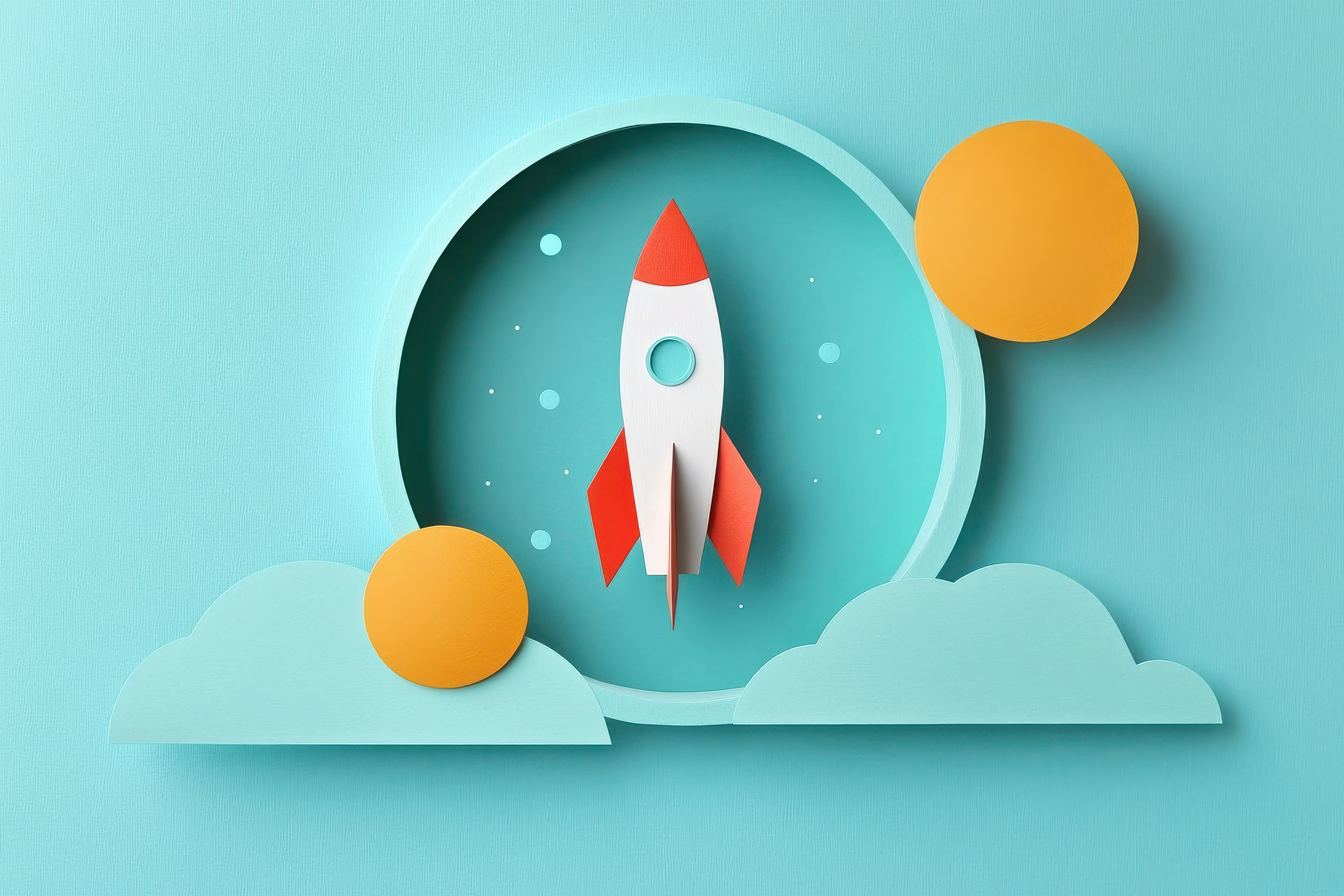 Created with images by Rika - "A stylized rocket blasts off from fluffy clouds into the sky" • The Stock Photo Girl - "A stylized rocket launching through clouds with sun elements in a paper-cut design." • Ryzel Husein - "Coming Out Space Rocket From Laptop Screen" • AXYZ_STOCK - "A conceptual illustration of a rocket launching from the screen of a smartphone, symbolizing the rapid growth and expansion of social media, digital marketing, and online business"