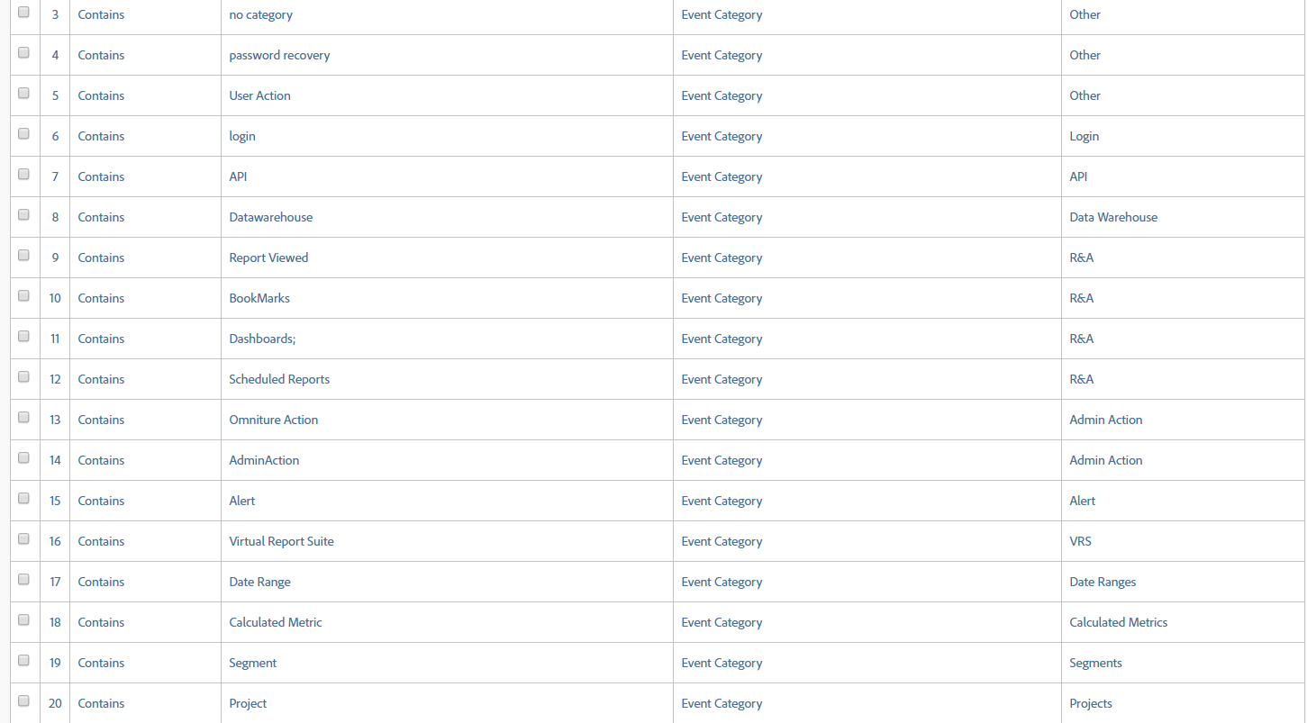 2. Improve the completeness of Event Category by looking for keywords such as Calculated Metric, Project, etc. Here are the rules we applied: