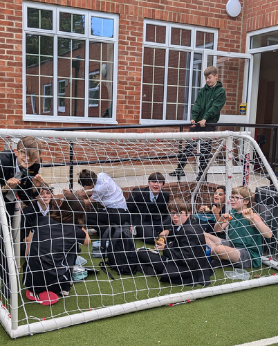 Finally, don't be alarmed. We don't lock up our students here at Canbury. The photo above is actually showing you how they chose to spend lunch time today - making creative use of the football goals!