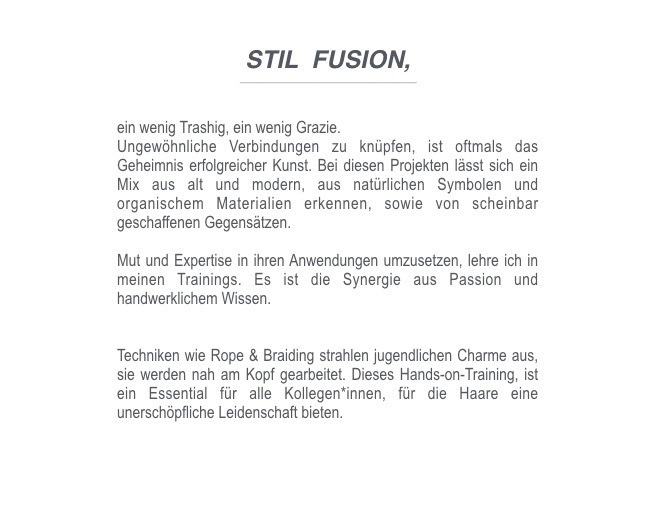 - Passion, im Umgang mit dem Werkstoff “Haare“