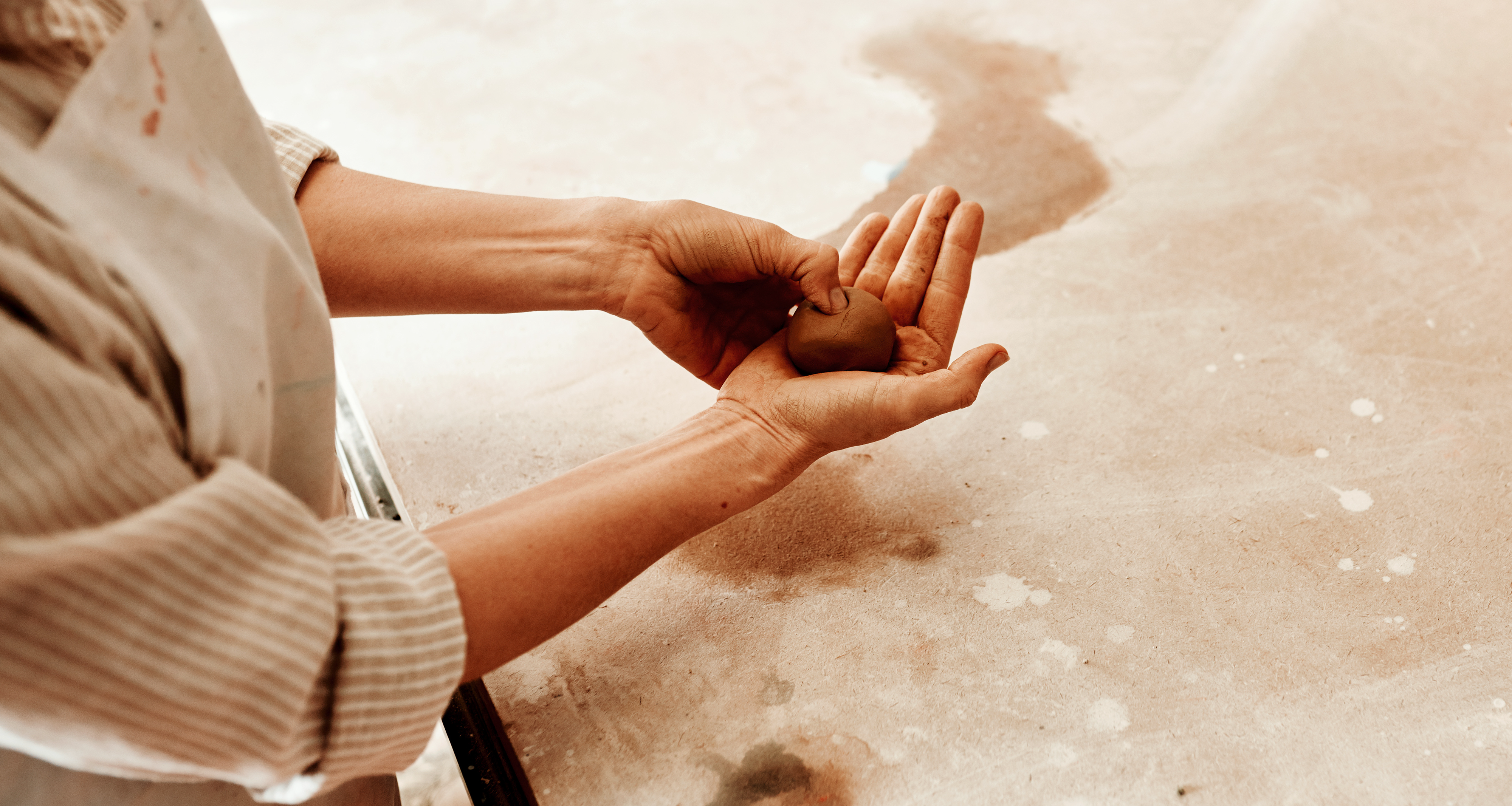 Created with images by ABX - "Close-up of a hand-polished mud ball reflecting light" • ThaaJamSession/peopleimages.com - "Hands, clay and pottery artist in art studio with design, mold and ceramic creation hobby at table. Startup, workshop and handmade creativity with artisan, person and craft with mud ball at class" • walkingarizona - "Mount Timpanogos, Utah 2015-02-08" • HISTOCK - "Potter preparing clay for throwing pottery wheel in workshop" • Jazz Blues - "砂だらけの手" • ABX - "Close-up of a hand-polished mud ball reflecting light"