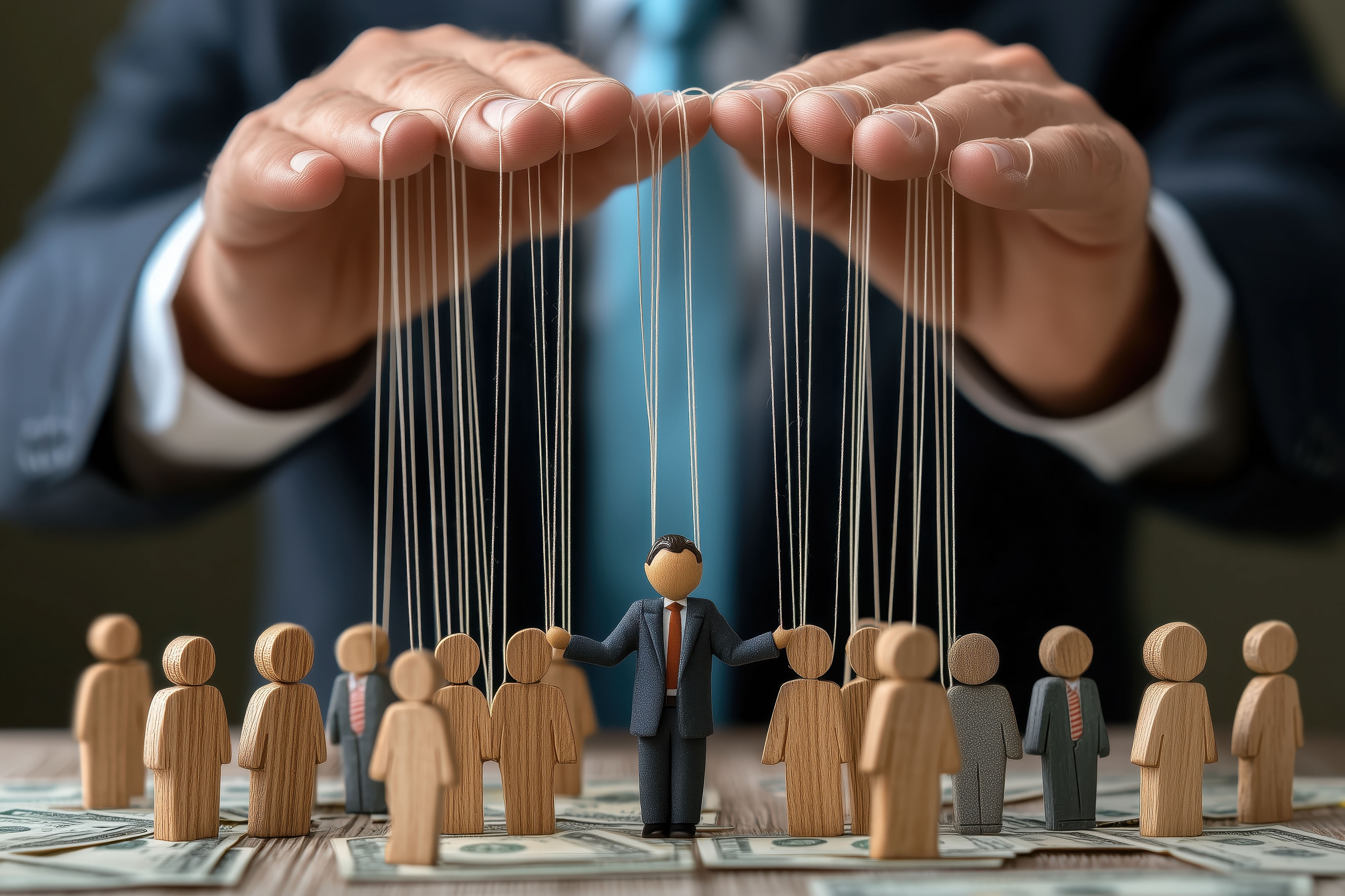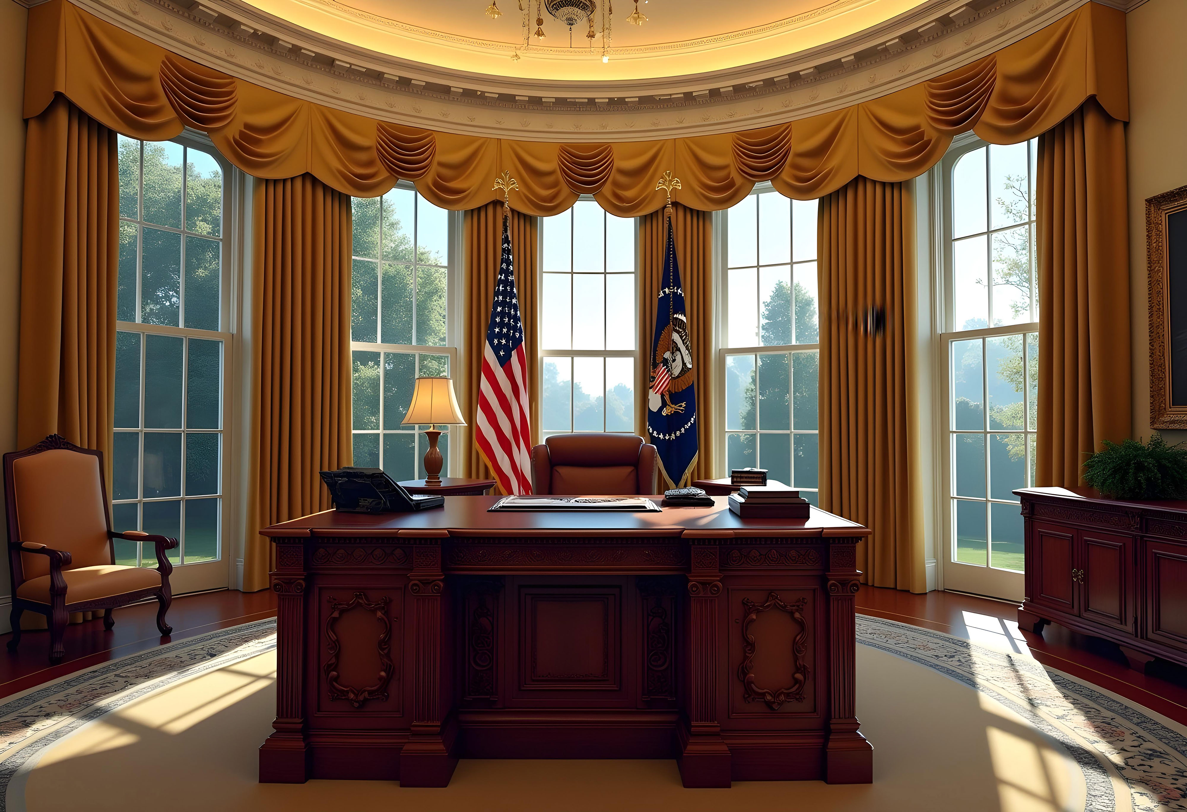 Creado con imágenes de Oleh - "Crowd walking down busy shopping street in paris at dusk" • Gatherina - "Blurred people crossing the street in black and white" • Thitiporn - "Manipulated Power: A businessman is controlled by unseen forces, symbolized by strings held by hands above, surrounded by many smaller figures on a bed of money." • Elnur - "The Oval Office in the White House with Gold Curtains and View of the White House Grounds" • VK Studio - "Whimsical scene of dollar bills flying around the US Capitol, symbolizing money and politics, against a soft-focus background of the iconic building." • CreativeSeven - "The Political Divide Understanding the Blue and Red Facets of Our Society"