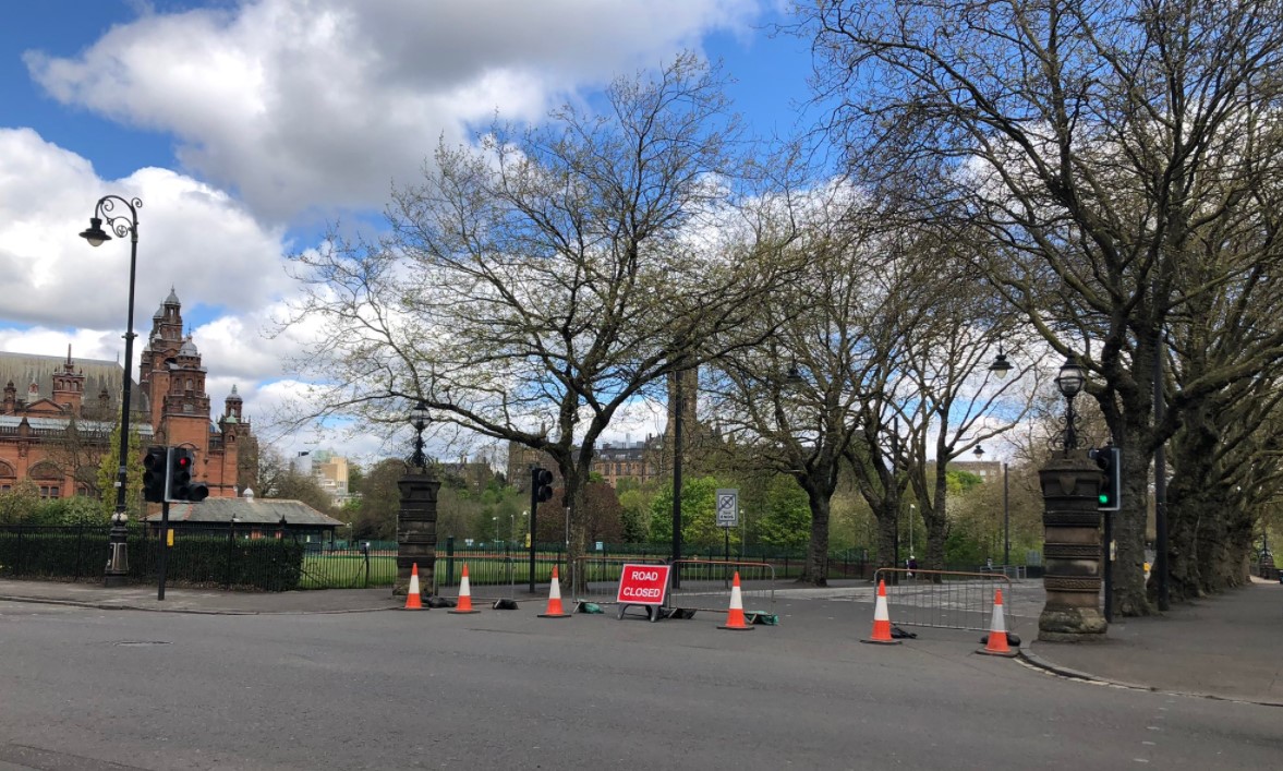 Spearheading GCC’s ambitious programme has been the closure of Kelvin Way to vehicular traffic. Kelvin Way located in Glasgow’s west end, next to Kelvingrove Park, in a heavily populated area comprising housing of mainly tenements and flats. From the beginning of lockdown, Kelvin Way and nearby paths became very heavily used by local residents – on foot and by bike - for daily exercise, making the 2-metre physical distancing rule difficult to achieve.