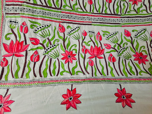 At our school exhibition, we proudly showcased the mesmerizing Kantha art from Santiniketan. Our stalls were adorned with stunning fabrics transformed by the skilled hands of women artisans. Each piece highlighted the intricate beauty of Bengal’s heritage while telling a story of empowerment and creativity. The exhibition not only celebrated the exquisite artistry of Kantha but also honored the women who brought these traditions to life, providing them with valuable skills and economic independence. Visitors were invited to explore the rich cultural tapestry and support the incredible craftsmanship of these talented artisans.