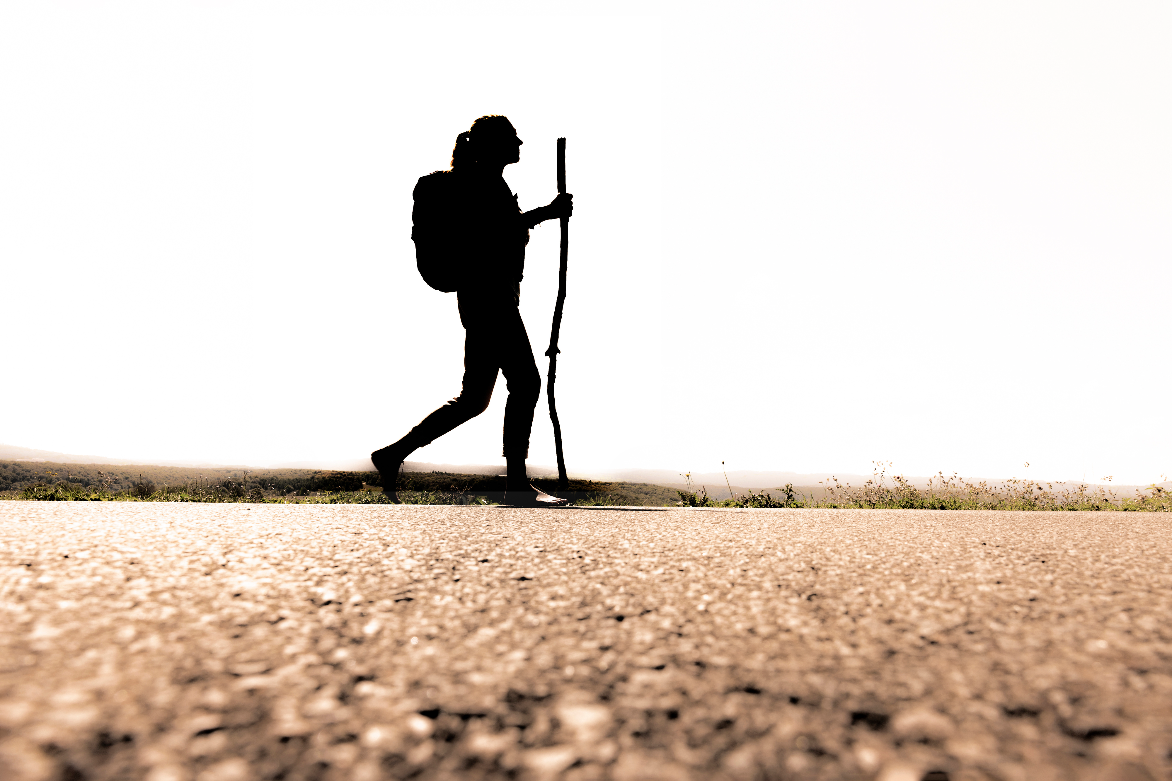 Creato con un’immagine di by-studio - "Silhouette einer Frau mit Rucksack auf einem Pilgerweg"