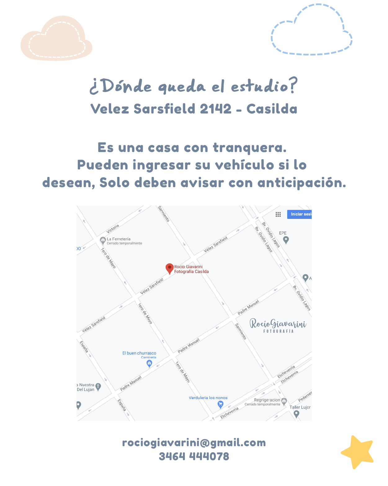 - Postergación: Notificar al menos con 2 días de anticipación para reagendar el turno. Se podrá pasar sin costo la fecha solo una vez. Salvo que la sesión sea al aire libre y el clima no acompañe.