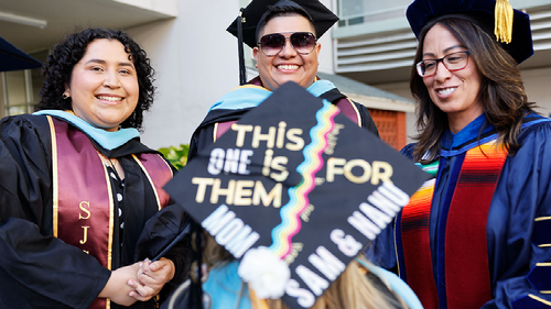 Tassels vary in use and color. At SJSU, the color of tassels for bachelor’s degree candidates represent each college. The tassel colors for the College of Information, Data and Society are lemon yellow (School of Information) and orange (Data Analytics).