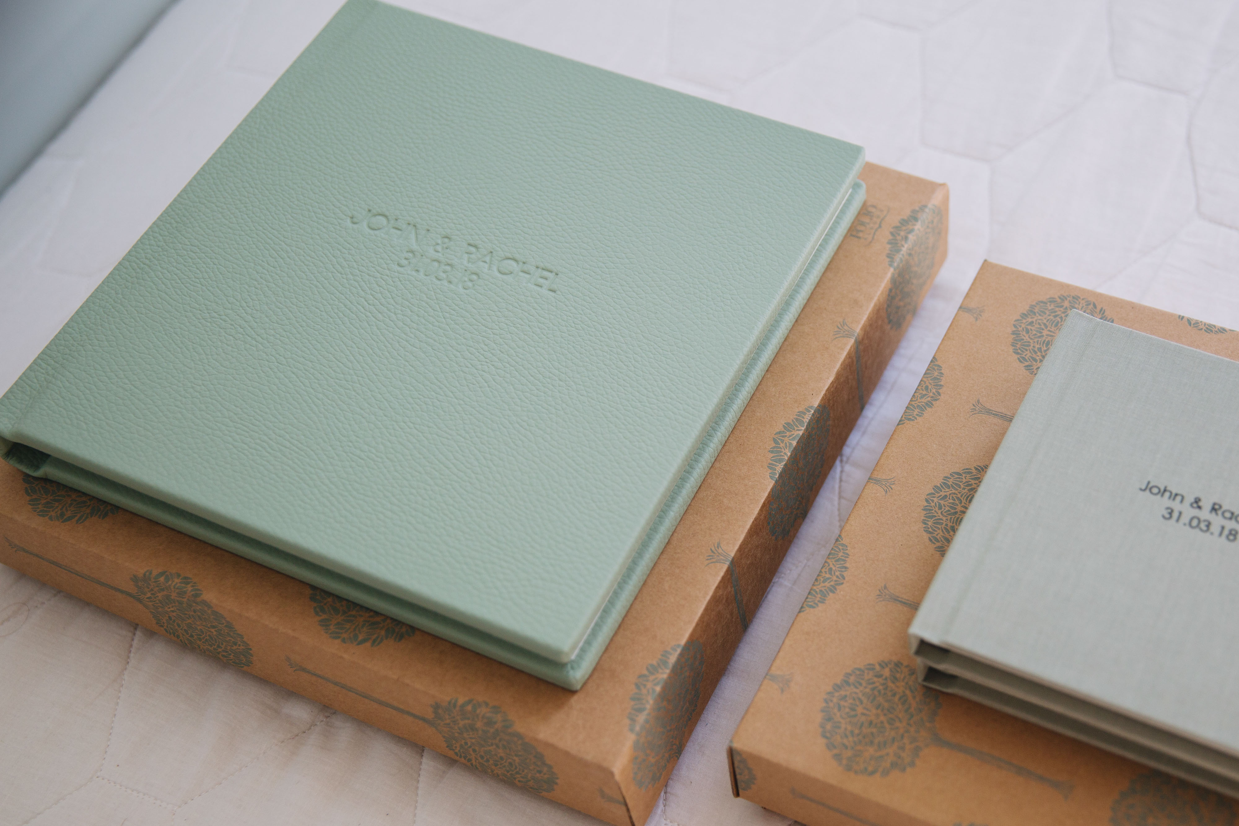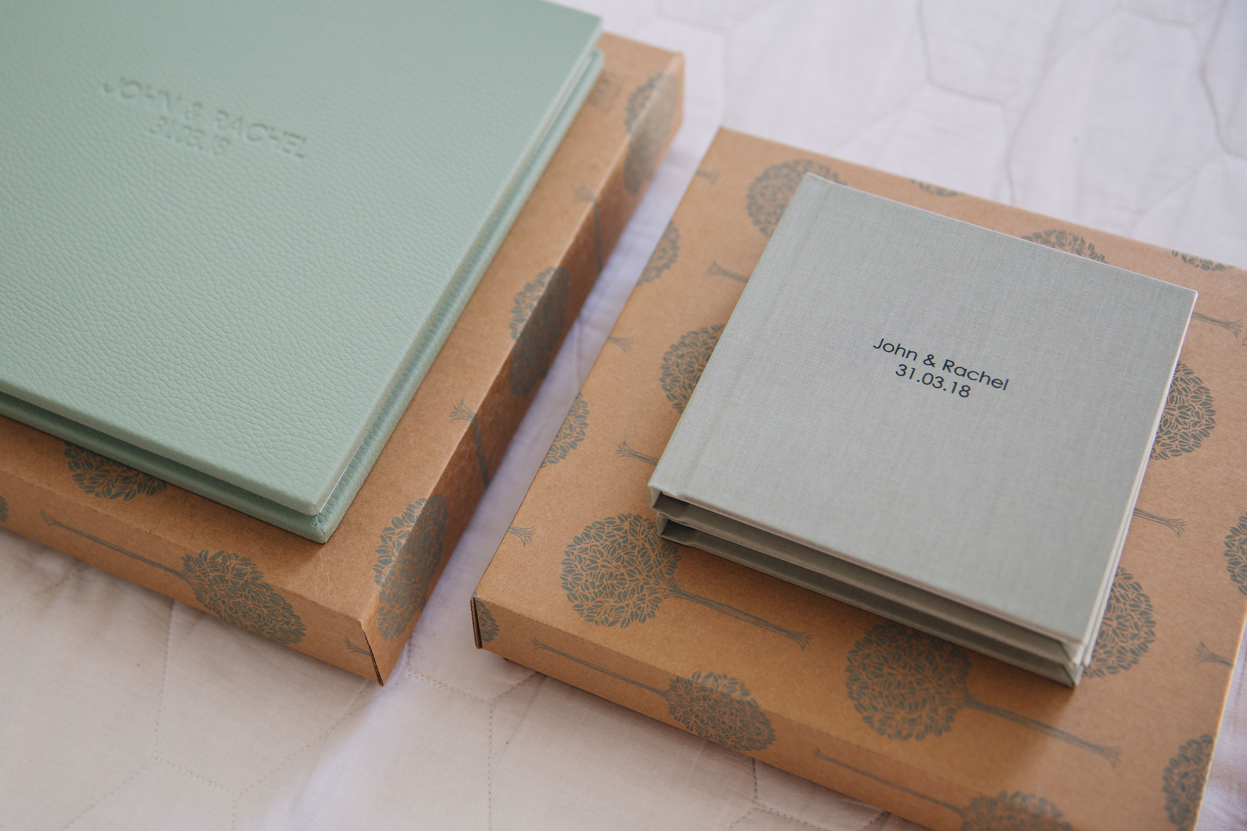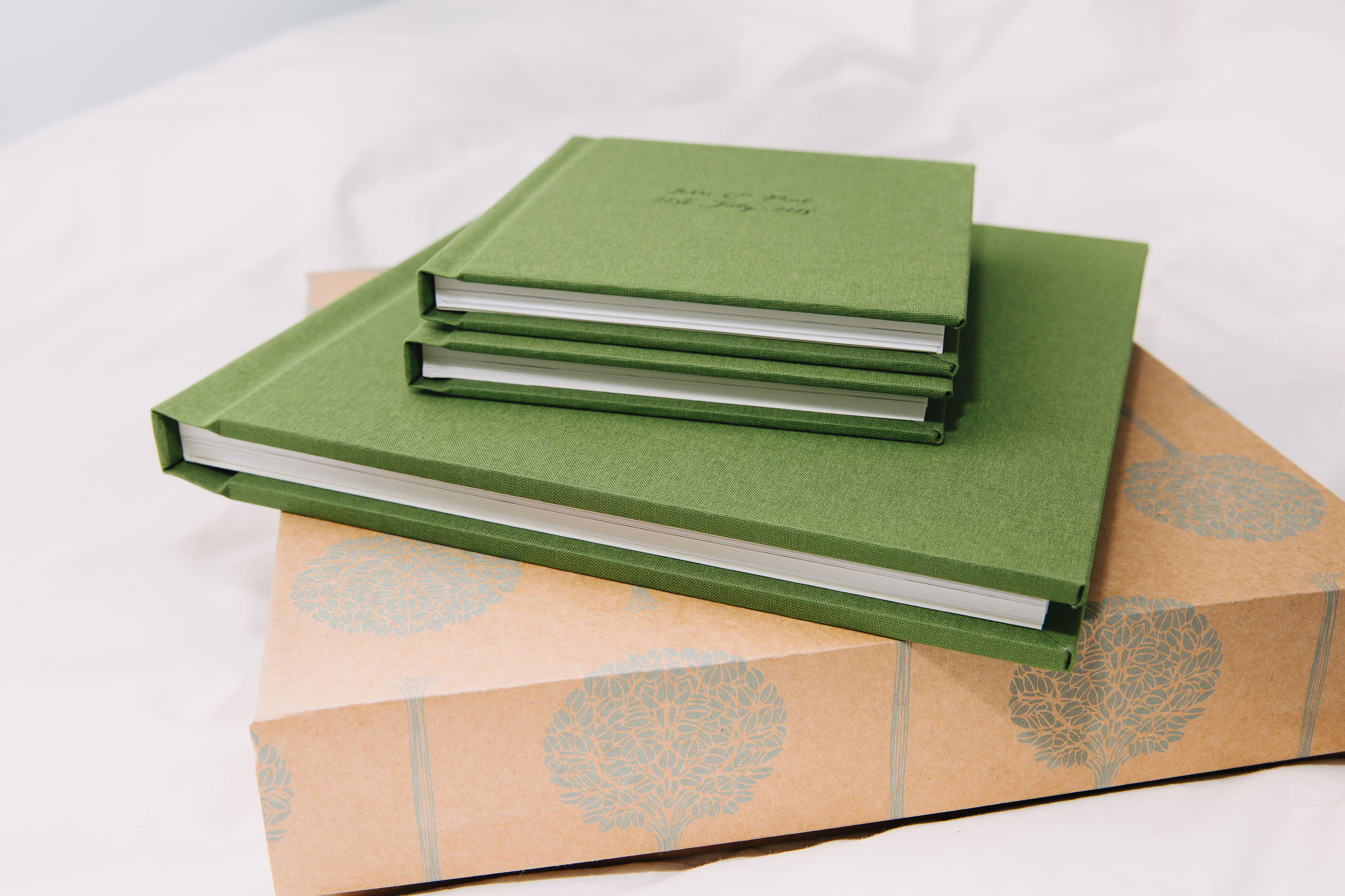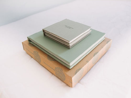 Rachel and John got two 'parent albums' alongside their main album as a gift for their loved ones. You can order 6x6 copies of your design. (Pastel fabric - silver moss - century gothic.)