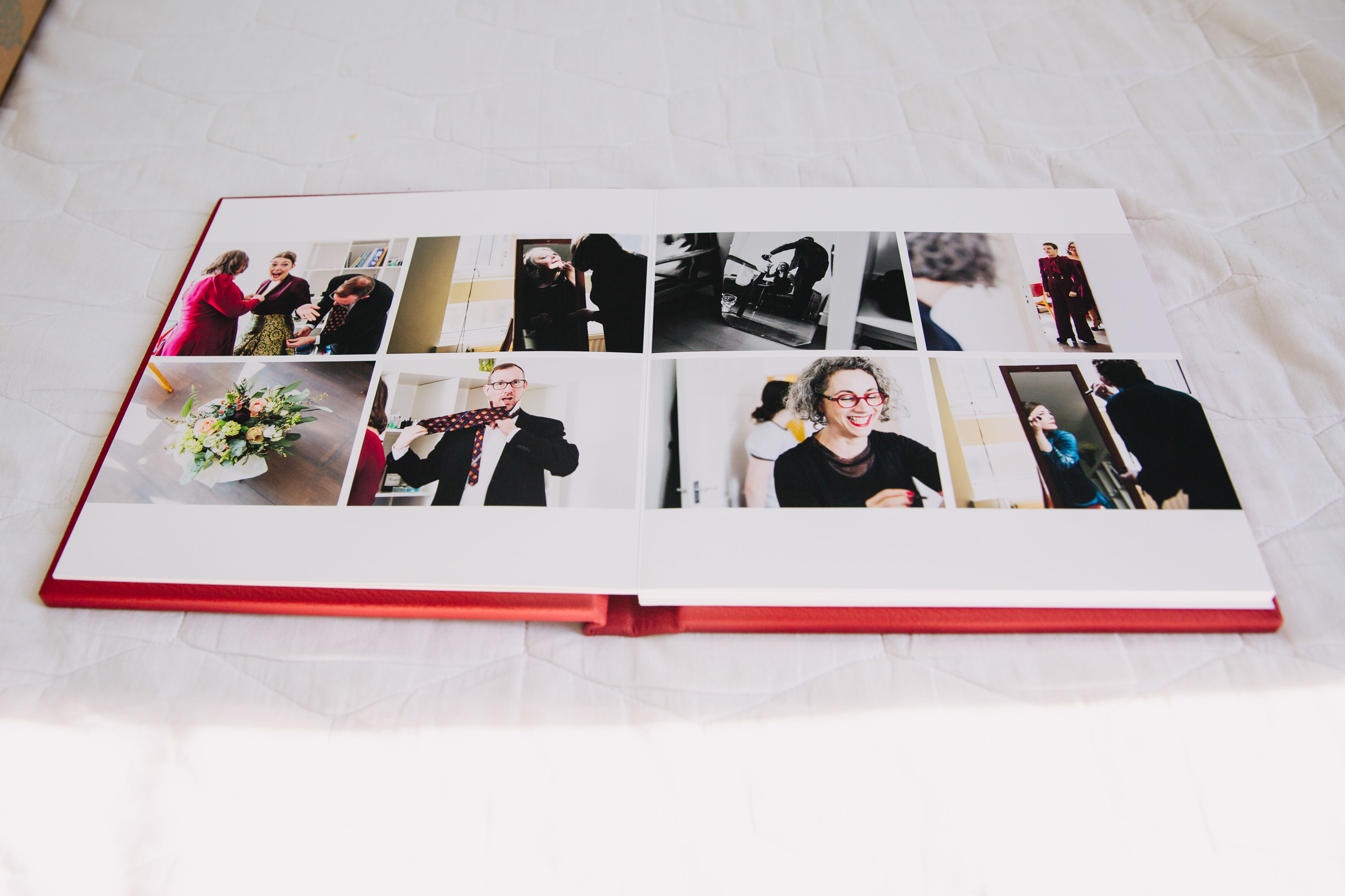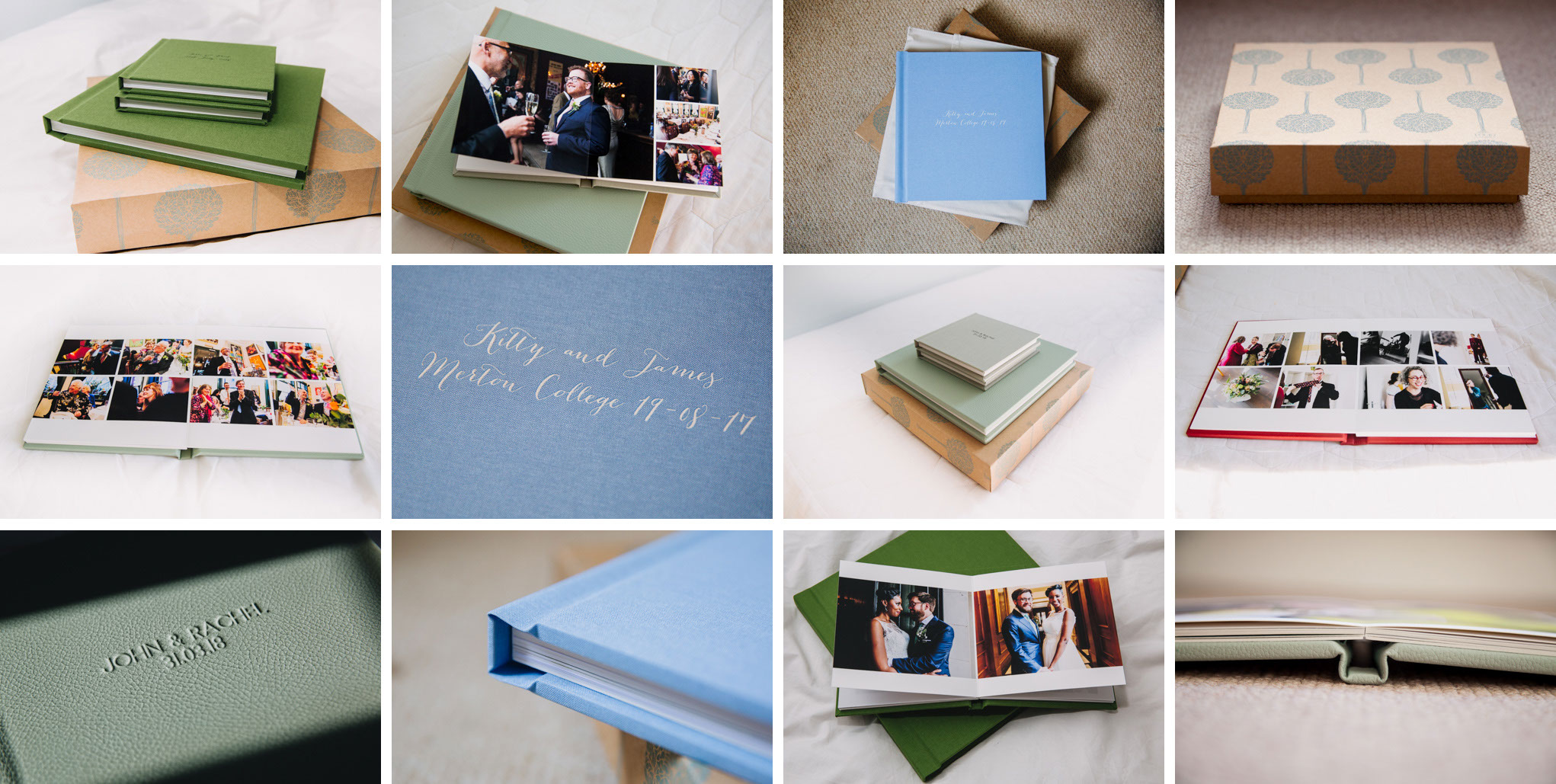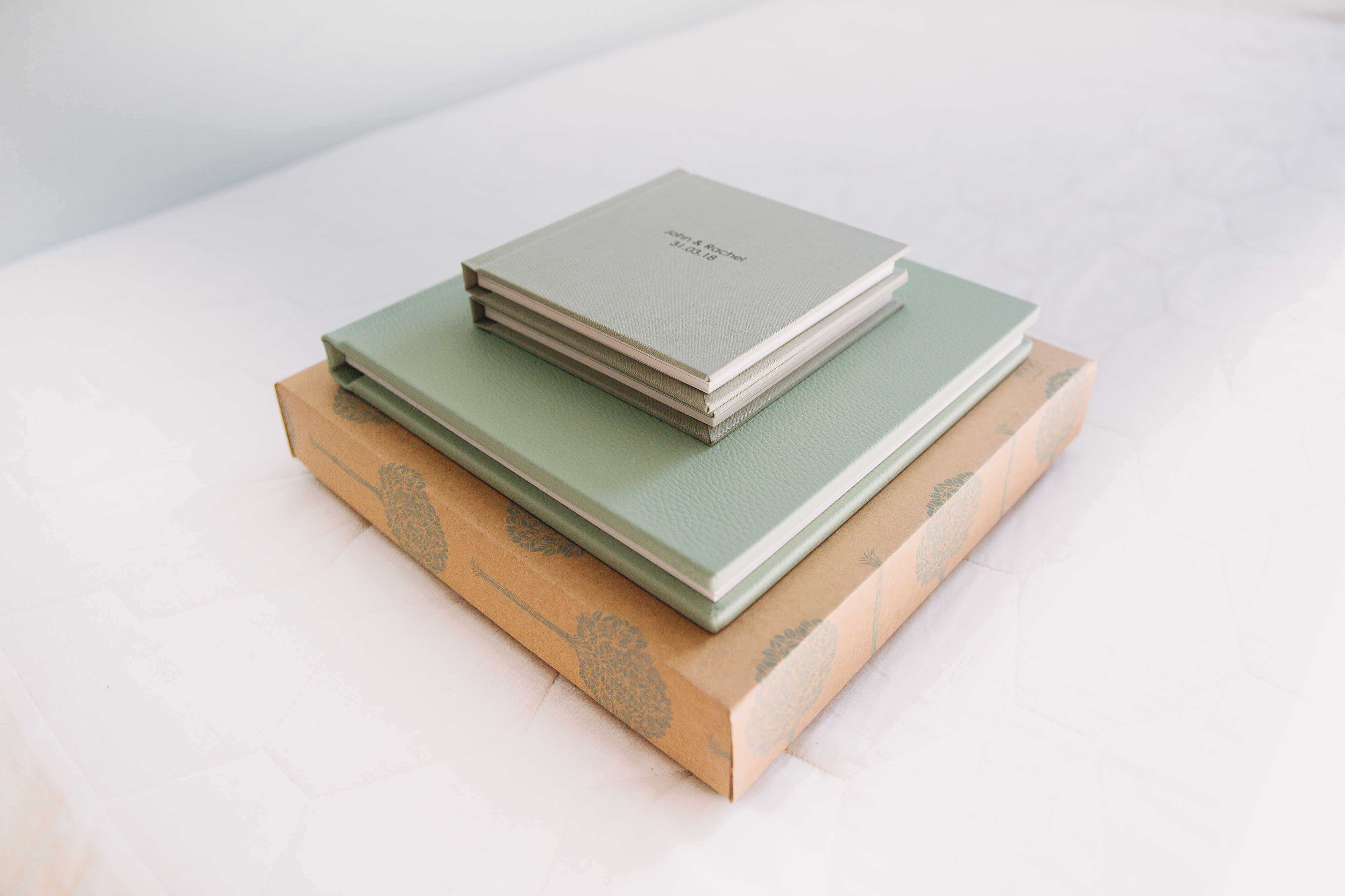 Rachel and John got two 'parent albums' alongside their main album as a gift for their loved ones. You can order 6x6 copies of your design. (Pastel fabric - silver moss - century gothic.)